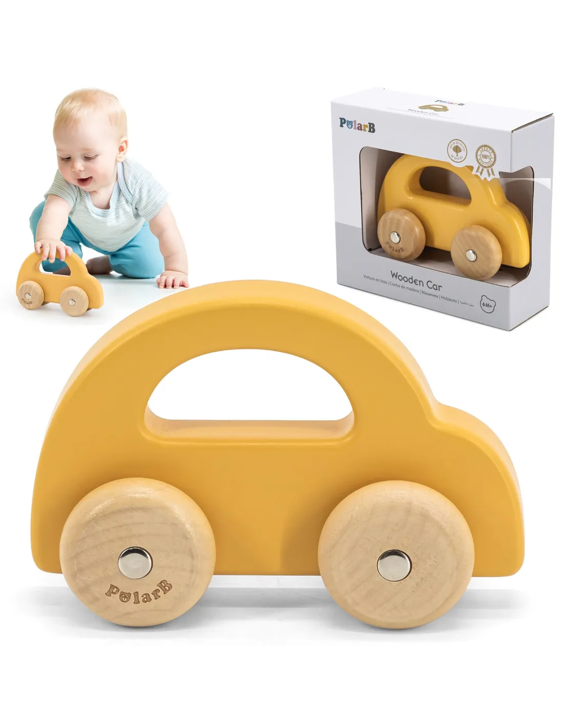VIGA PolarB Wooden Push Car Yellow