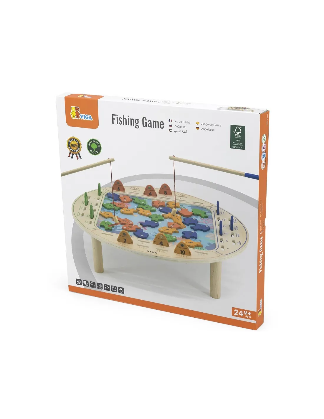 „Viga“ medinis žvejybos žaidimas skirtas vaikams, kurie mėgsta žaisti įvairius žaidimus ir leisti laiką su tėvais bei bendraamžiais. Jau nuo mažens jie mokosi varžytis, o tai geriausiai pavyksta žaidžiant kartu. Klasikinis žvejybos žaidimas perkurta į patrauklų medinį stalą. Dėka spalvotų žuvyčių su užrašytais skaičiais vaikai gali ne tik rengti įdomias žvejybos varžybas, bet ir varžytis mokomuosiuose skaičių žaidimuose.