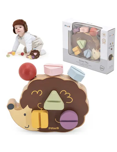 VIGA PolarB Medinis konstrukcinis žaislas ežiukas su Montessori varžtais