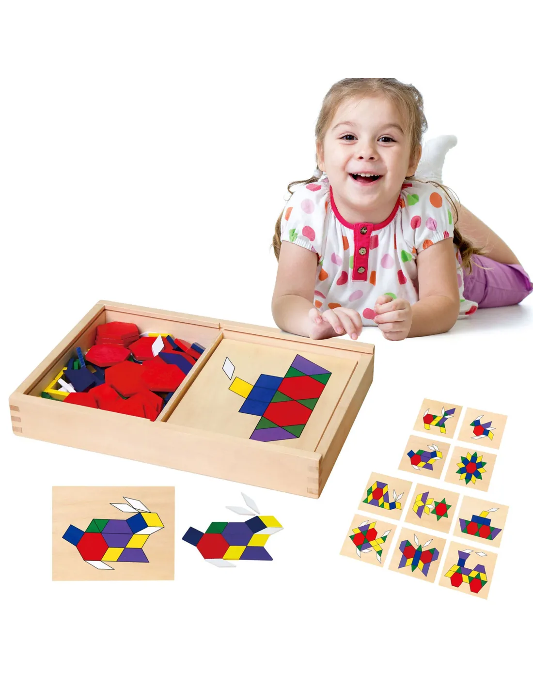 VIGA Mediniai geometriniai mozaikiniai dienovaizdžio blokai Montessori loginė dėlionė 148 dalys