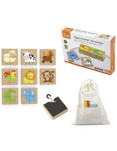 Mediniai magnetiniai gyvūnų dėlionės rinkiniai, pagaminti žinomo žaislų gamintojo „Viga Toys“, skirti vaikams nuo 18 mėnesių, puikiai tinka darželiui ir namams.