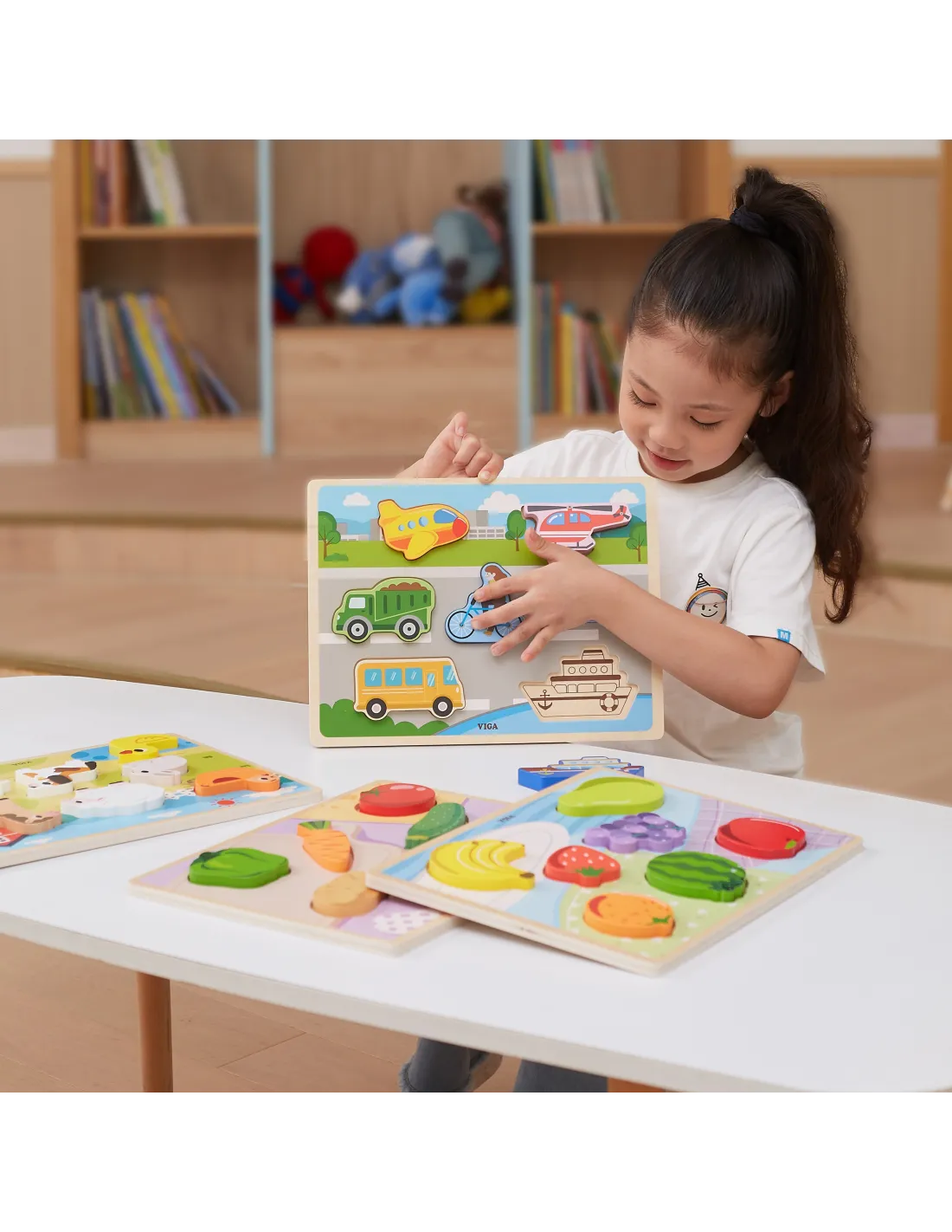 „VIGA“ medinis dėlionė su fermos tema. Komplektą sudaro spalvinga lentelė ir 7 detalės. Žaidimo tikslas – suderinti gyvūnų paveikslėlius su atitinkamomis vietomis ant spalvingos lentelės, kurioje pavaizduoti trūkstamų detalių piešiniai, kad būtų lengviau orientuotis. Tokia veikla padės ugdyti rankų judesių tikslumą, gerinti rankų ir akių koordinaciją, taip pat lavinti atmintį, loginį mąstymą ir koncentraciją. Dėl detalių storio šią dėlionę galima naudoti kaip figūrėles kitiems žaidimams.