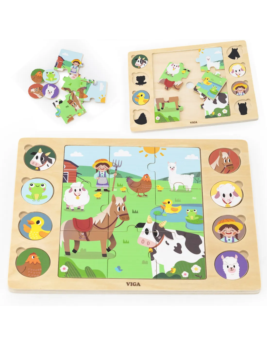 VIGA Medinė dėlionė "Atspėk šešėlį" - Ūkio dėlionė 17 dalių