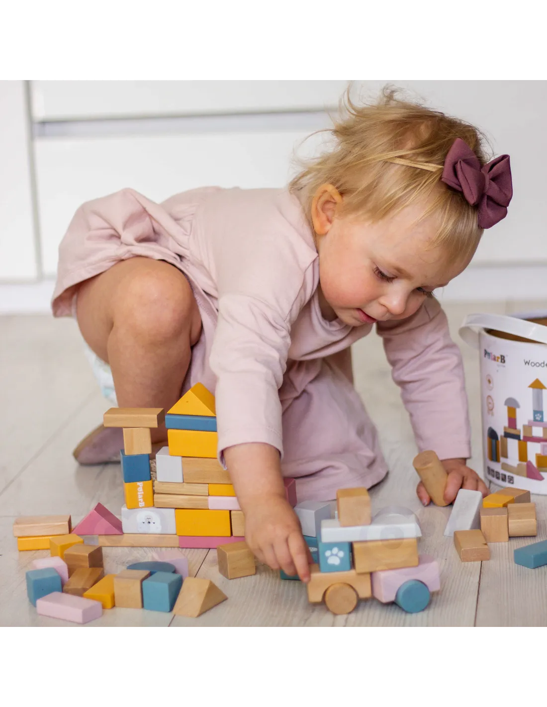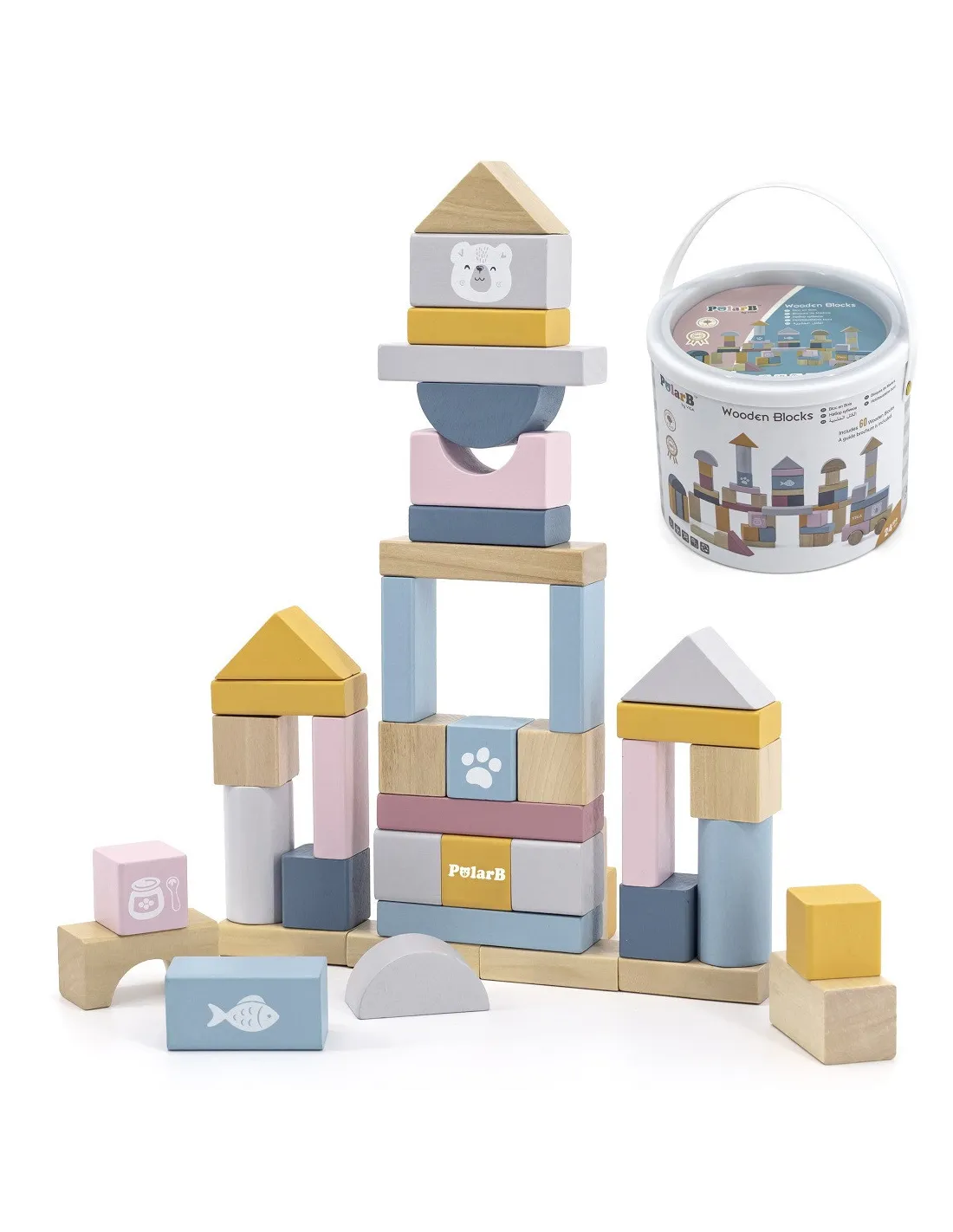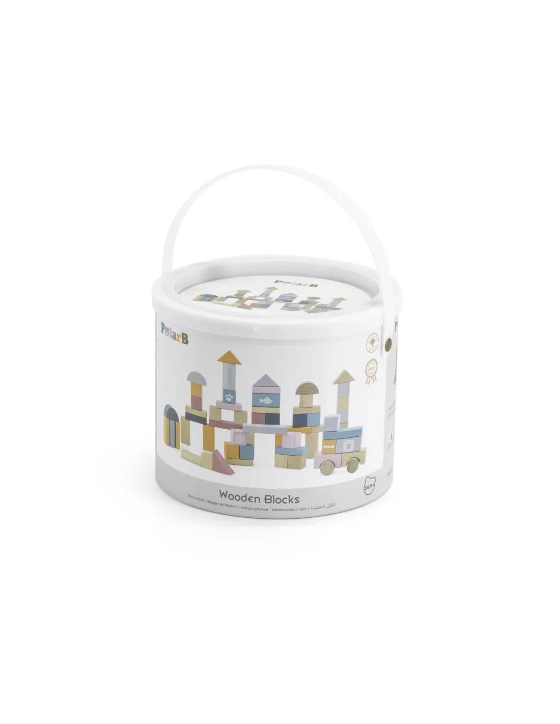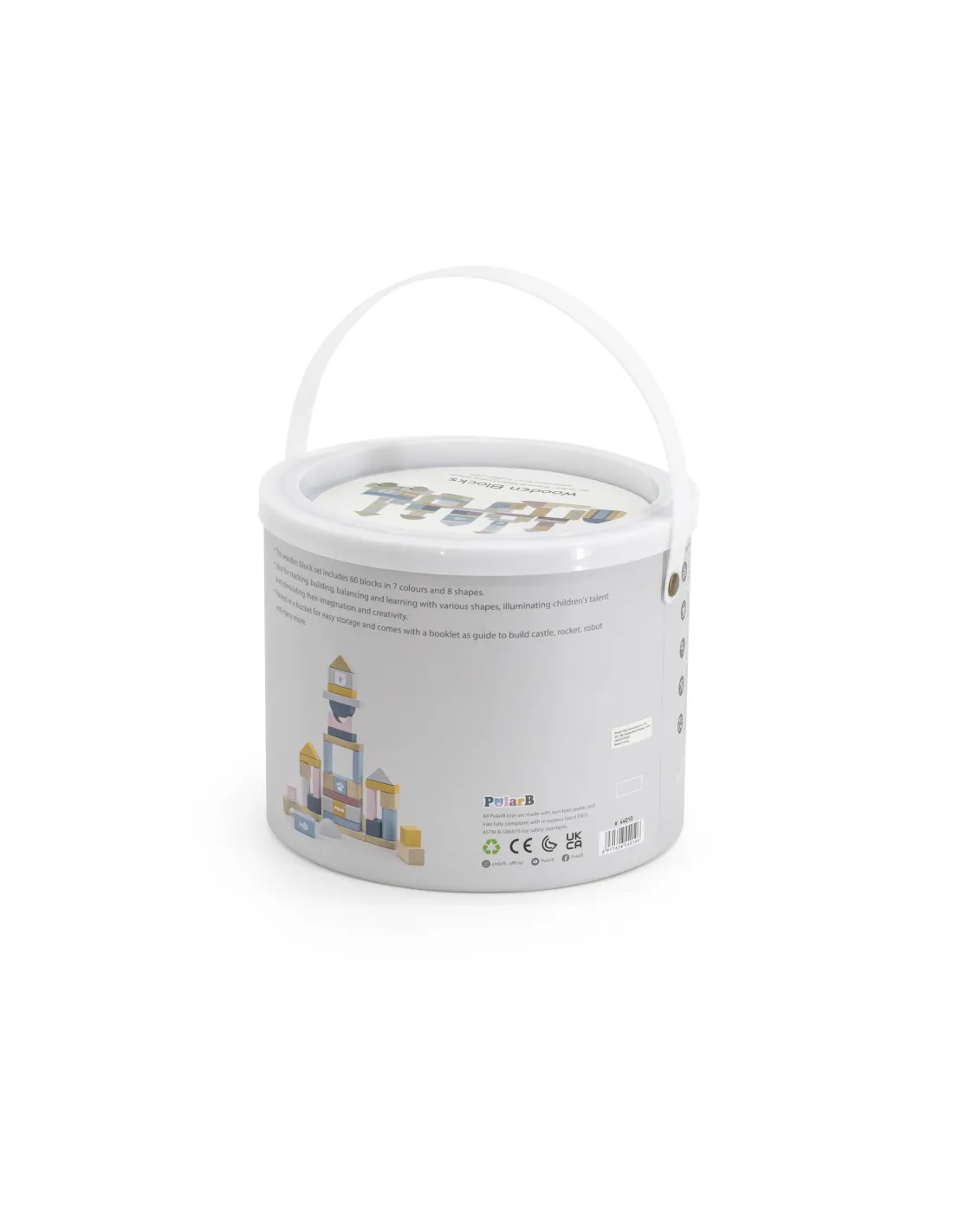 VIGA PolarB Medinių kaladėlių rinkinys kibirėlyje - 60 dalių