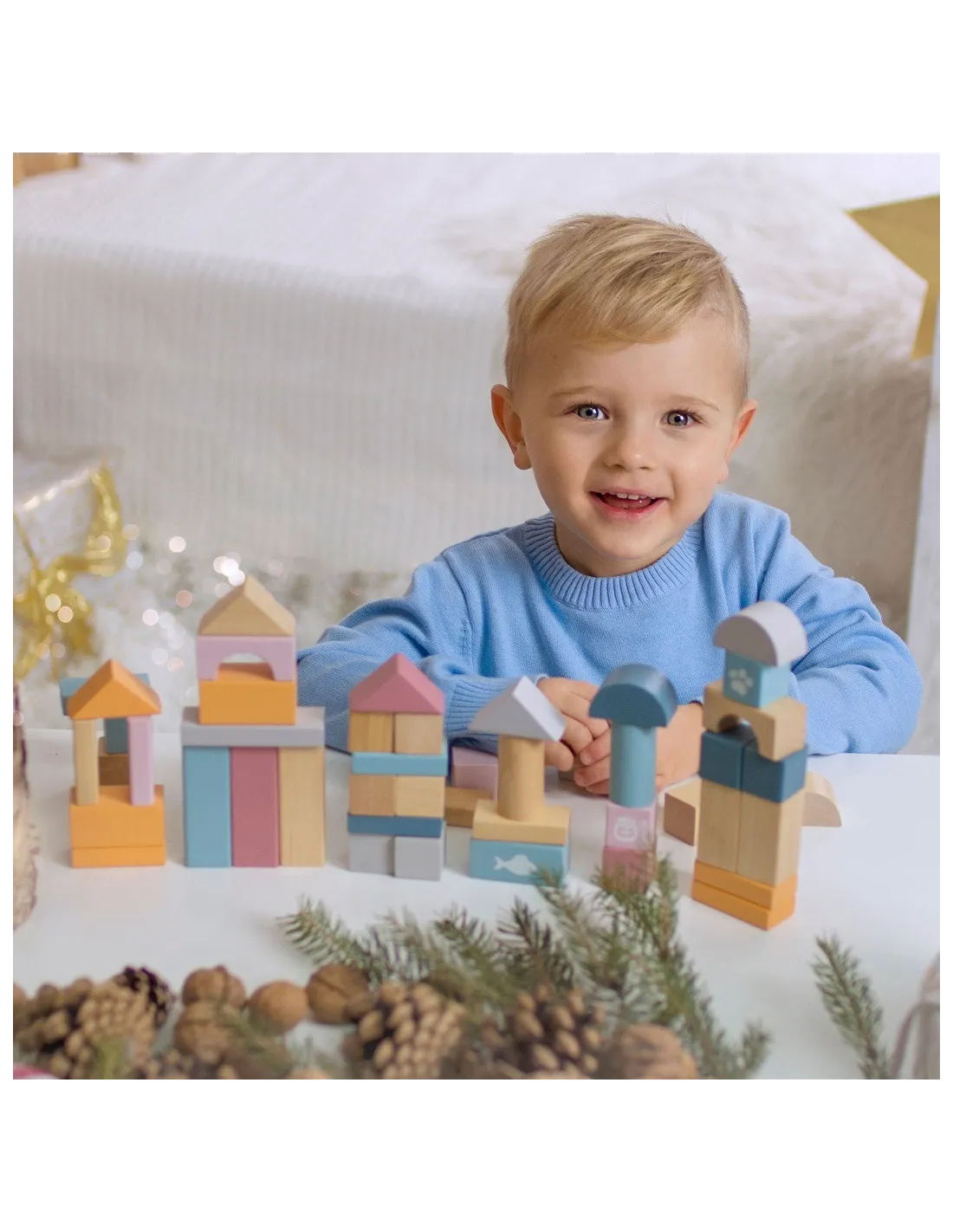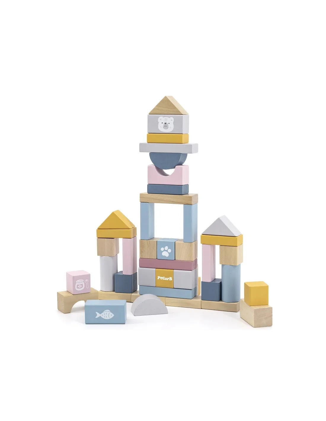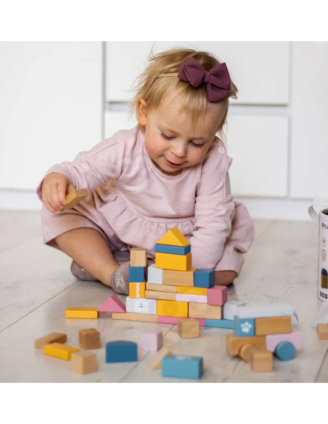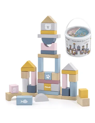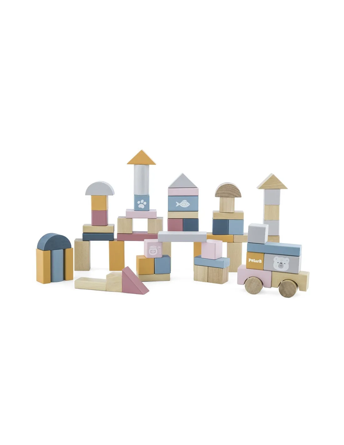 VIGA PolarB Medinių kaladėlių rinkinys kibirėlyje - 60 dalių