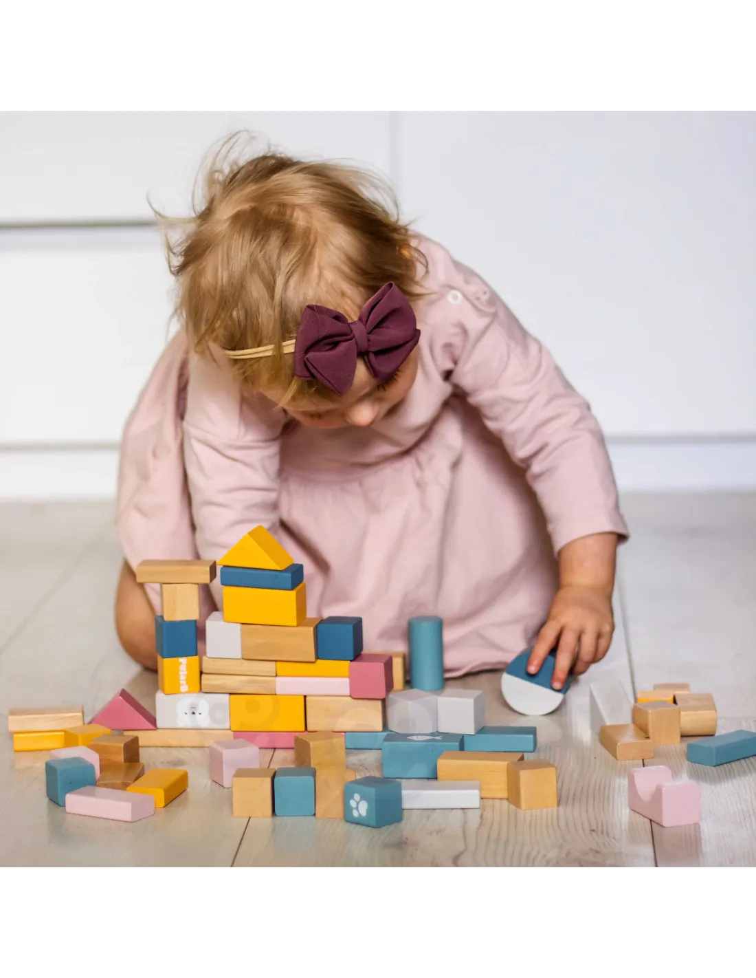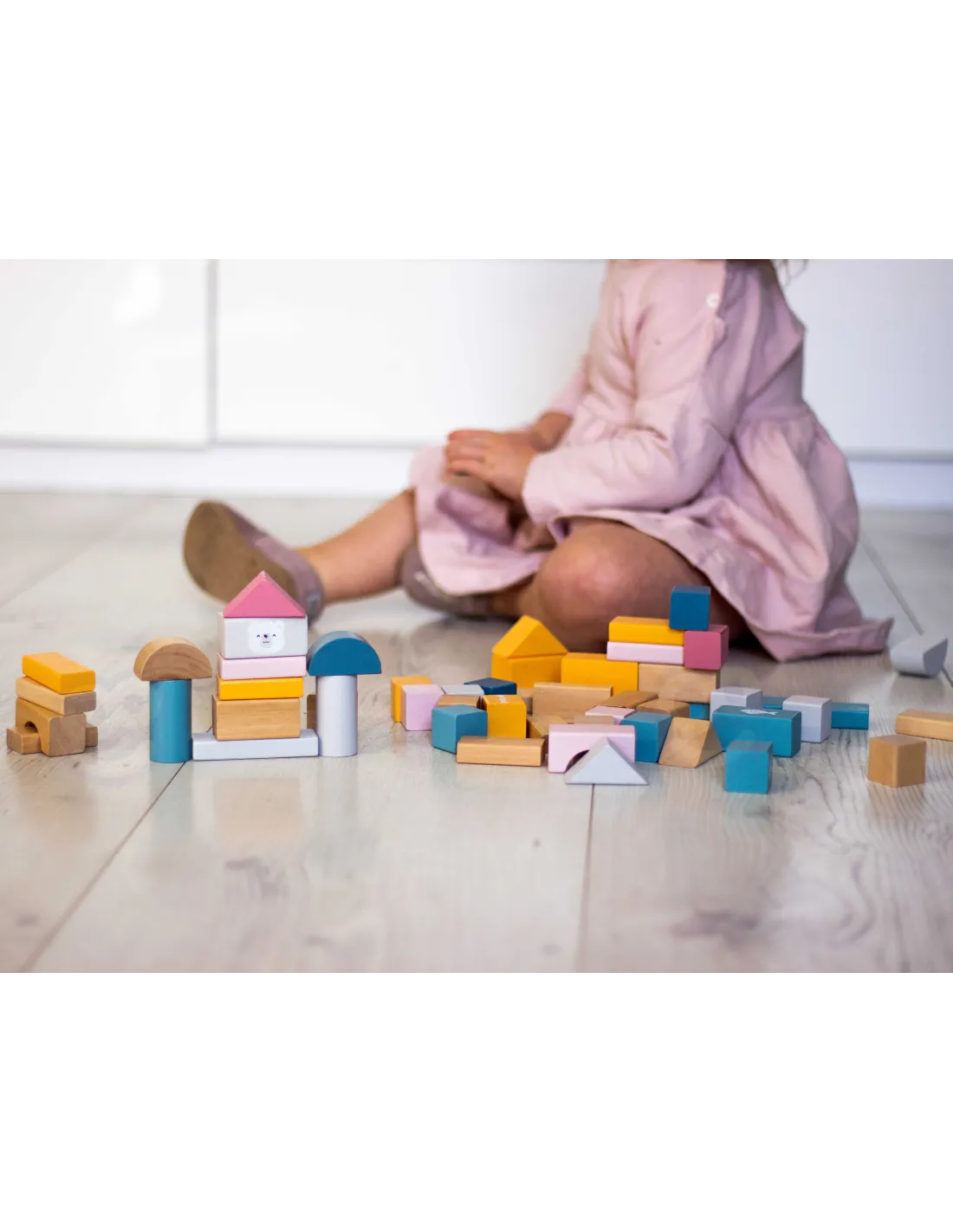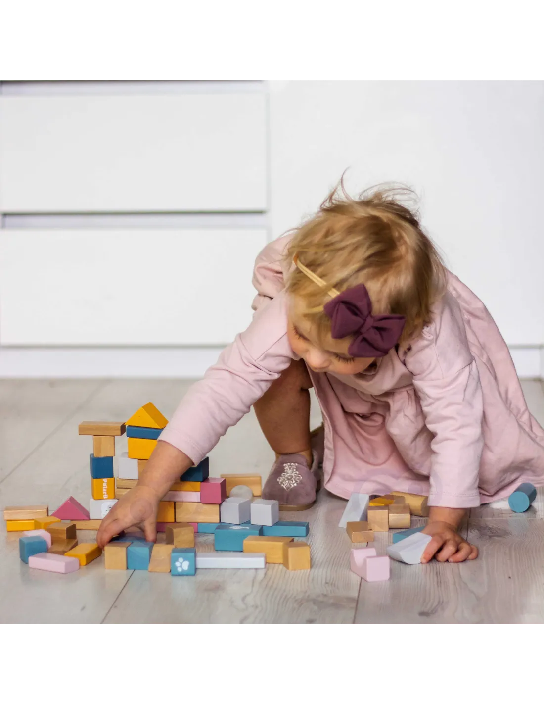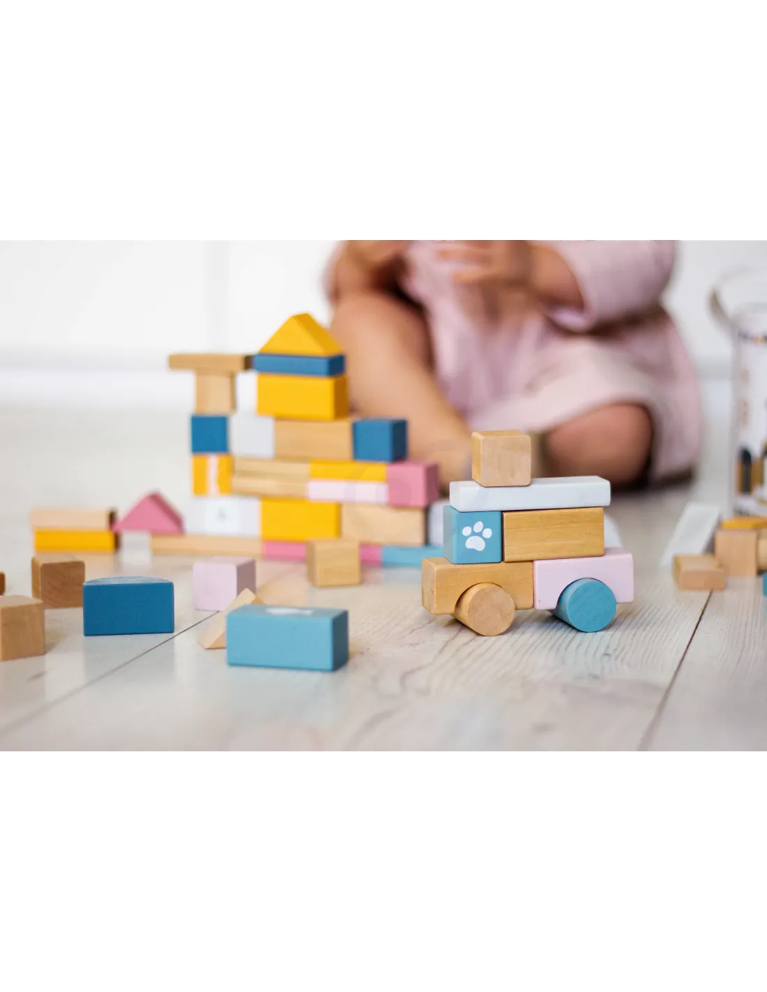 VIGA PolarB Medinių kaladėlių rinkinys kibirėlyje - 60 dalių