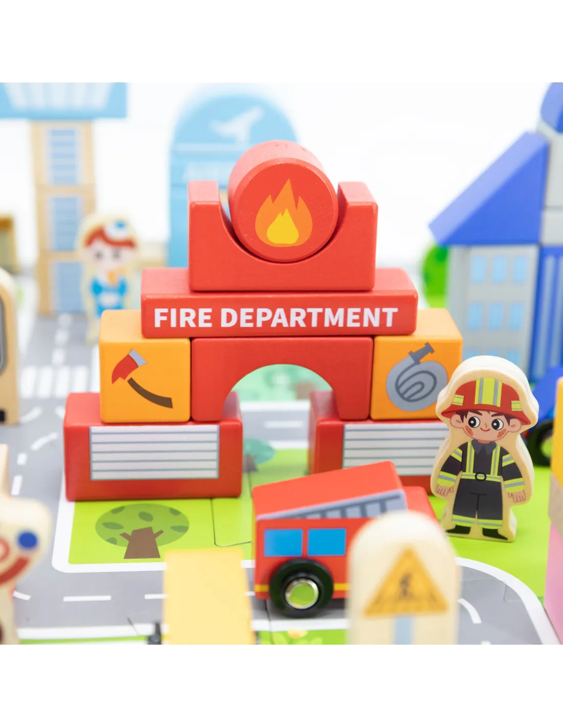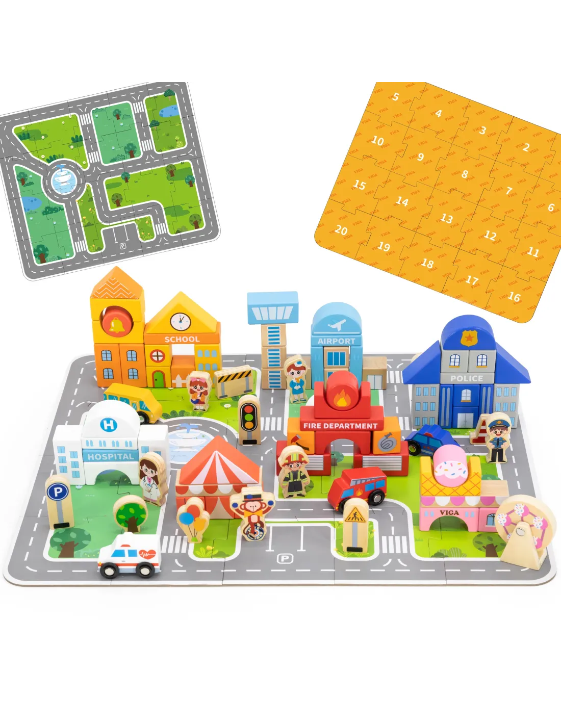 VIGA medinis rinkinys "Building a City Blocks Board" figūrėlės