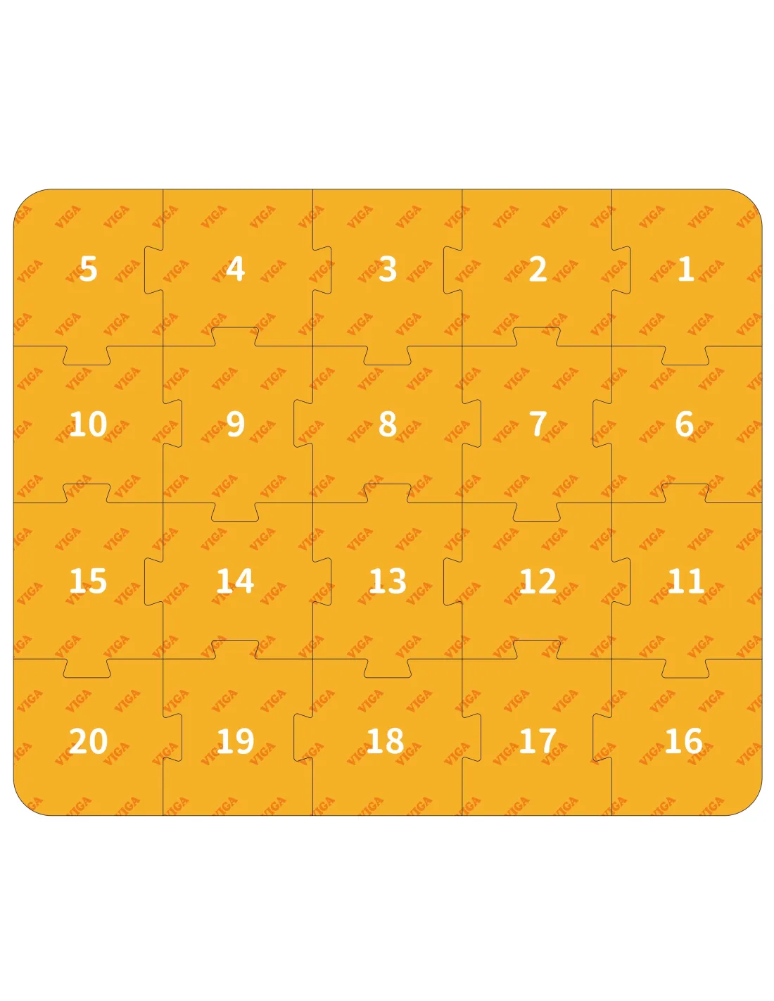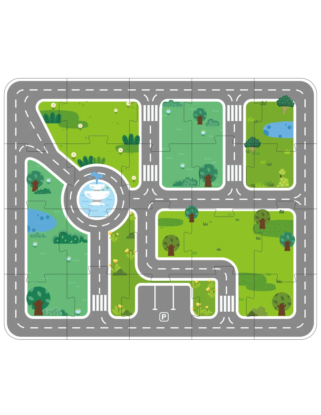 - - 20 dėlionės dalių, iš kurių surenkamas lentelė, ant kurios bus statomas miestelis. Kiekviena dalis yra sunumeruota ant nugaros.