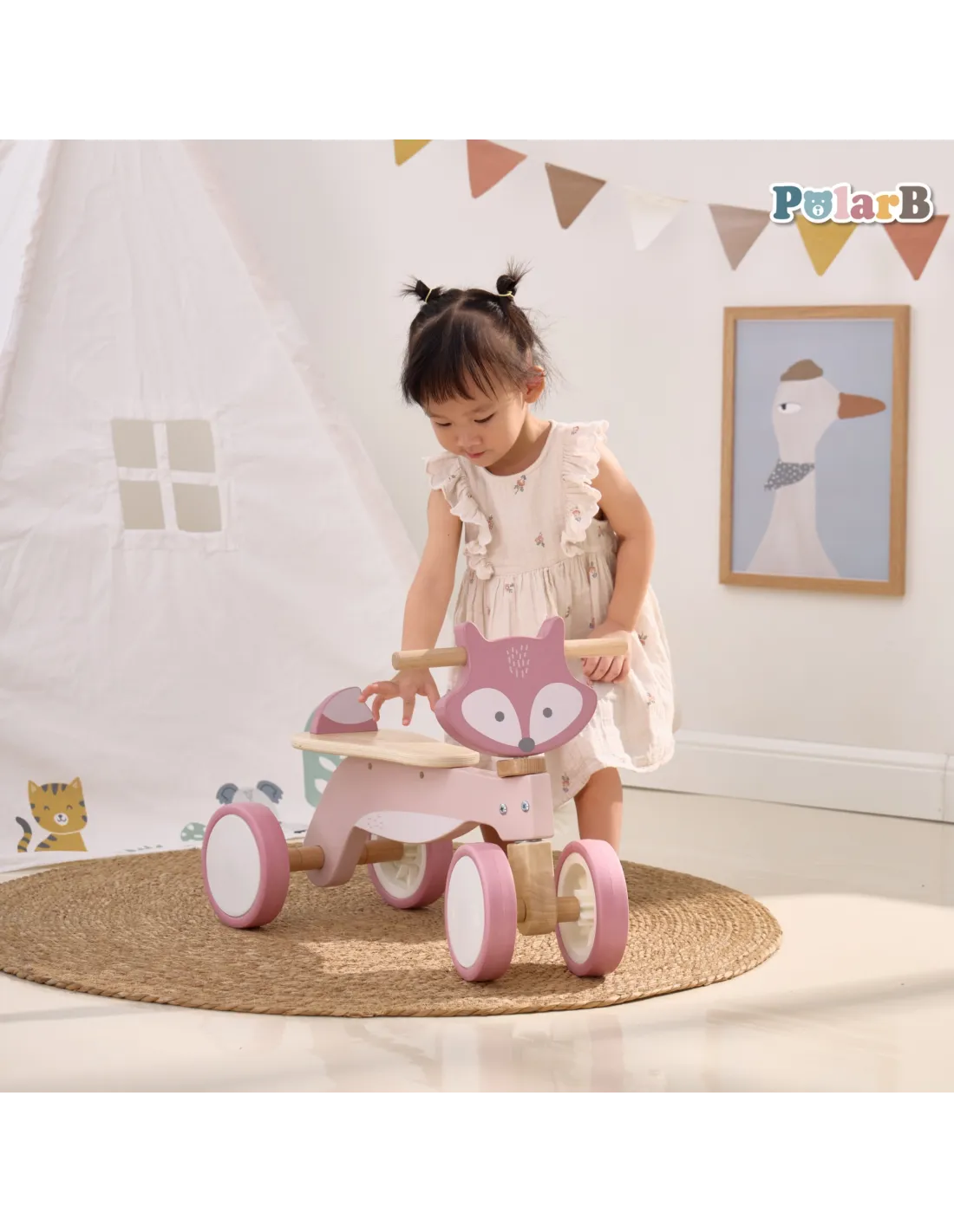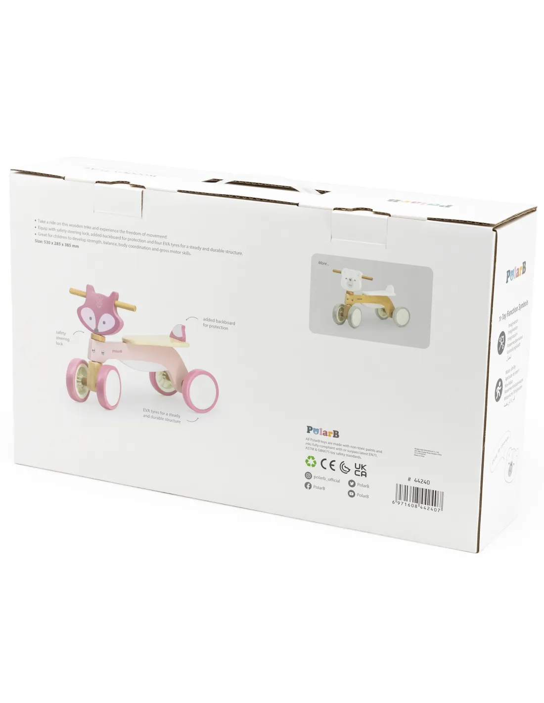 „PolarB Fox“ medinis važiuojamasis žaislas – tai žavus „VIGA“ žaislas. Tai puiki transporto priemonė, padedanti vaikams žaisdami ugdyti raumenų jėgą ir motorinę koordinaciją. Šis pastelinėmis spalvomis dažytas lapės formos važiuojamasis žaislas paskatins jūsų mažylį būti fiziškai aktyviam ir tyrinėti pasaulį. Ši spalvinga transporto priemonė – tai nuostabus žaislas, kuris jūsų mažyliui suteiks valandų valandas džiaugsmingo žaidimo.