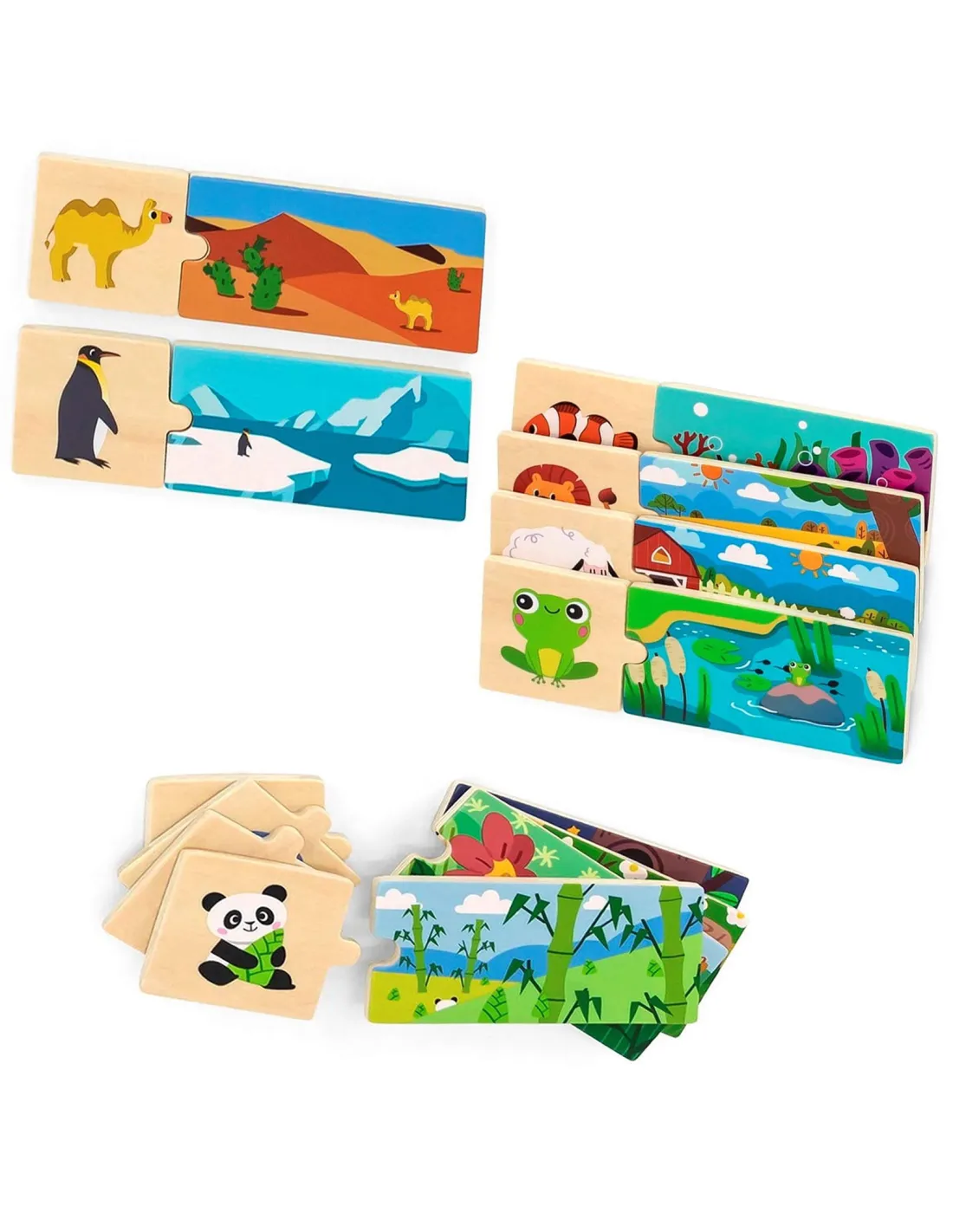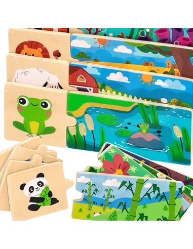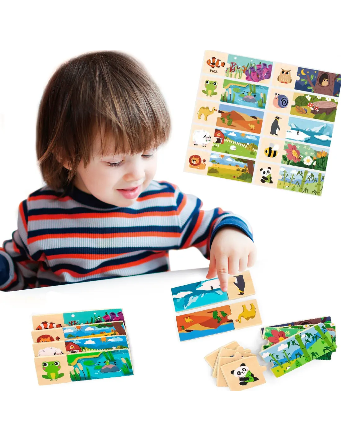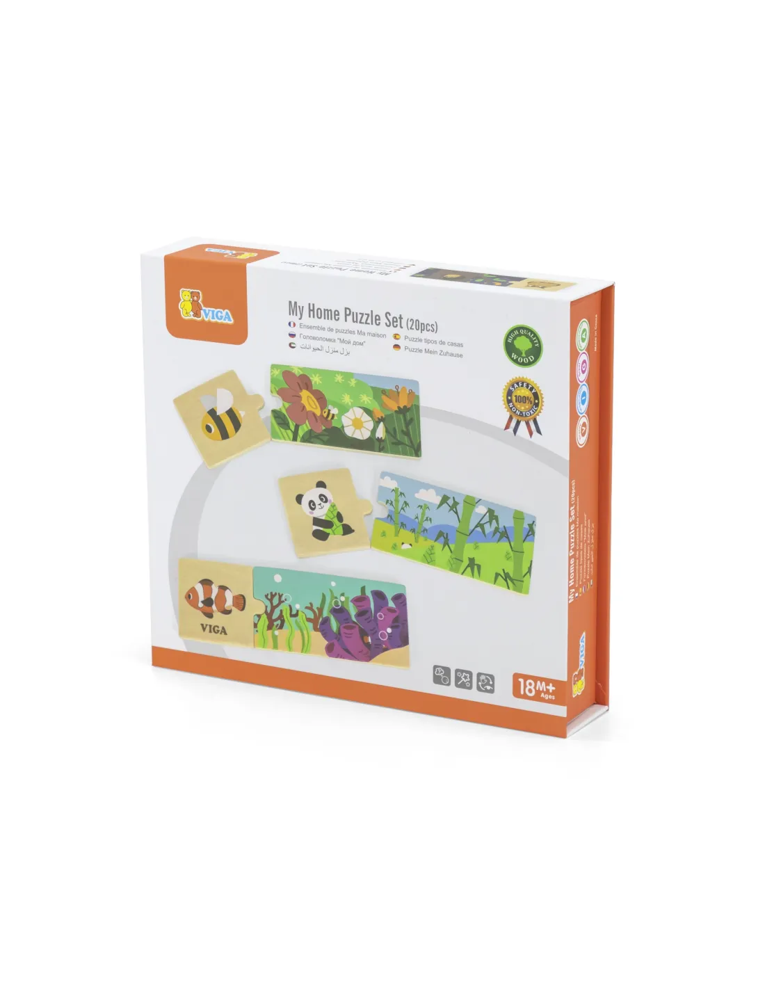 Logic puzzles from the VIGA brand – the fun involves assembling matching pieces . The set consists of 20 pieces that must be connected so that the animal is assigned to its natural habitat. The pieces are very well-matched and feature colorful images .