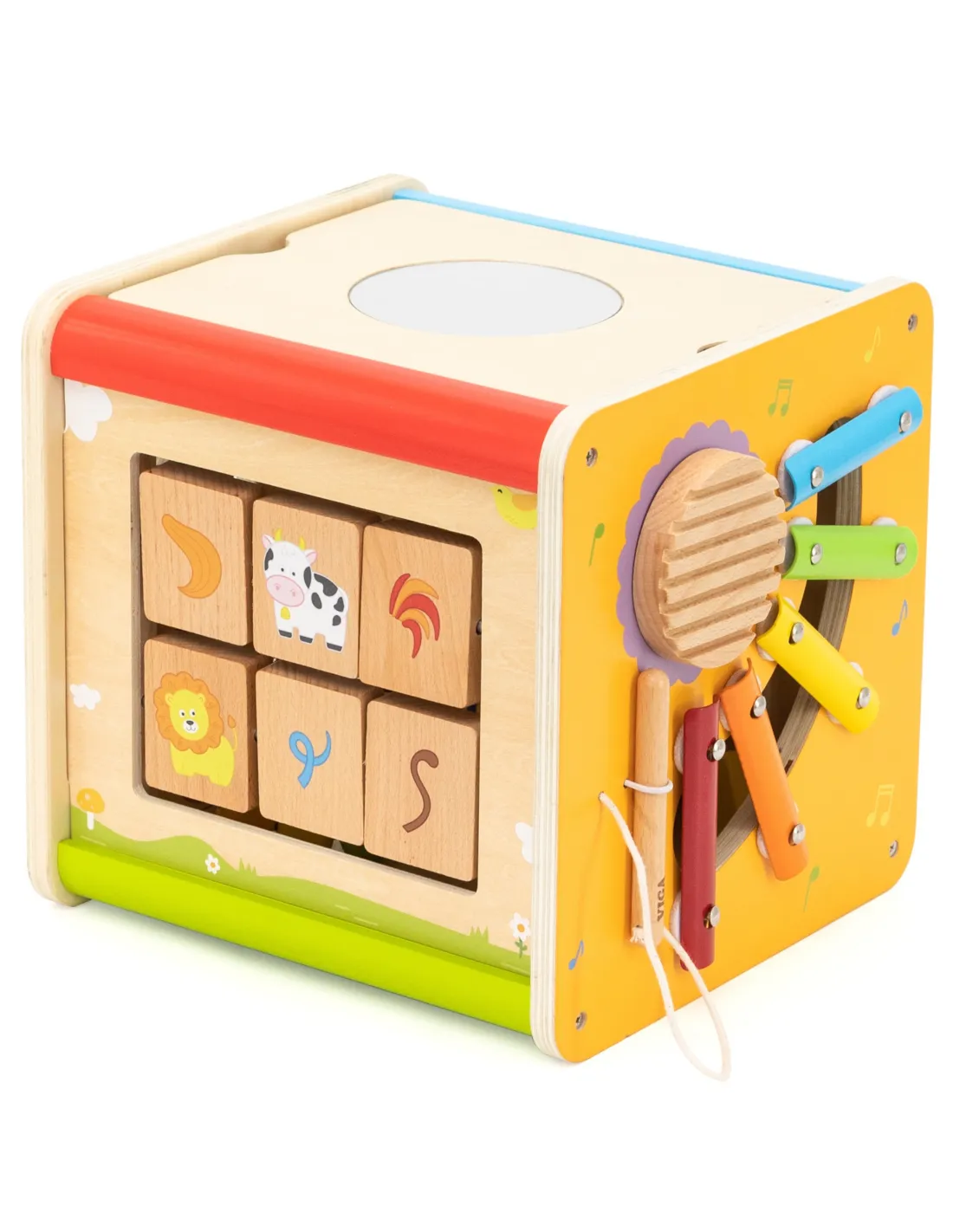 Atraskite spalvų, formų ir garsų pasaulį su mūsų lavinančiu veiklos kubeliu ! Šis daugiafunkcis žaislas suteiks valandų valandas įtraukiančio žaidimo ir kartu skatins jūsų mažylio vystymąsi. Kiekviena kubelio pusė yra naujas, žavus nuotykis , kupinas iššūkių, kurie stimuliuoja pojūčius, lavina motorinius įgūdžius ir moko per žaidimą . Tai puikus pasirinkimas mažiesiems tyrinėtojams, kurie mėgsta eksperimentuoti ir tyrinėti pasaulį!
