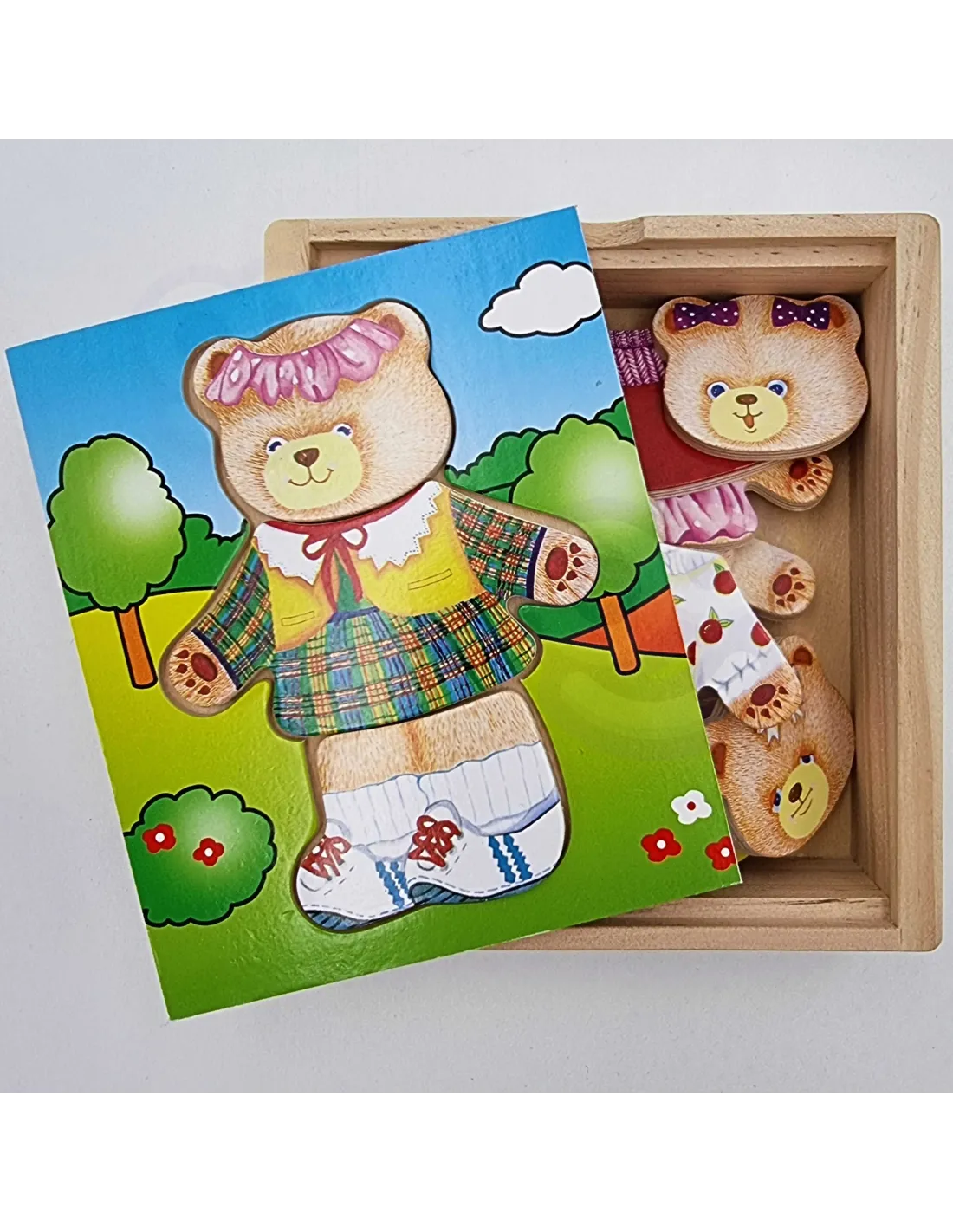 Dėlionė leidžia mums surinkti šešis žavingos meškiuko mergaitės atvaizdus su skirtingomis nuotaikomis ir drabužiais. Be to, kad tai labai smagu, šis žaislas lavina rankų įgūdžius ir loginį mąstymą, taip pat moko mus atpažinti emocijas.