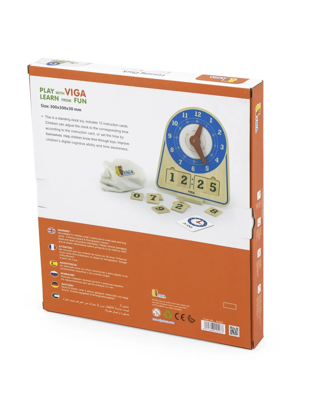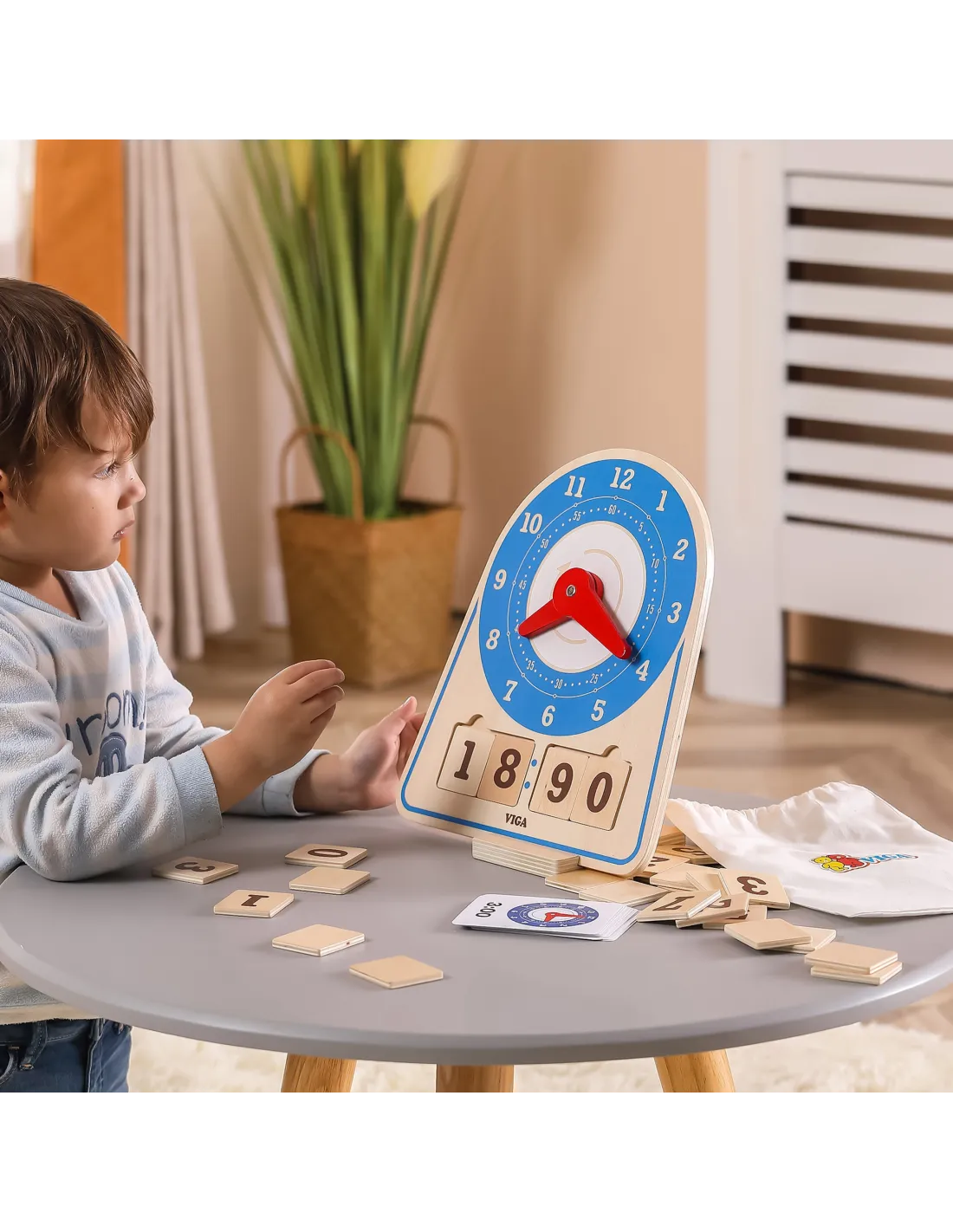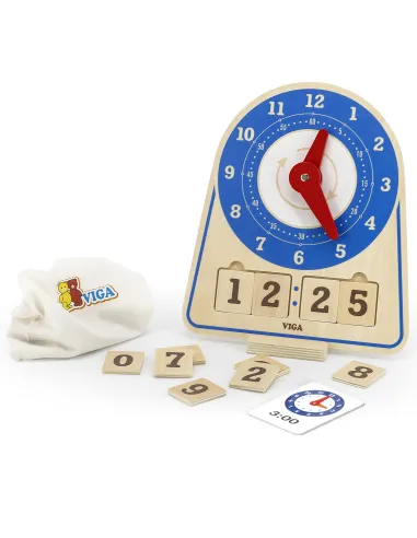 Medinis laikrodis laikui mokytis iš gerai žinomo ir gerbiamo prekės ženklo „Viga“ yra puikus pavyzdys, kaip smagu ir naudinga leisti laisvalaikį su savo vaiku. Šis pastatomas žaislas turi 12 mokomųjų kortelių . Viršuje yra mechaninis laikrodžio ciferblatas, o apačioje – elektroninis laikrodžio ekranas. Vaikai gali išmokti laiką naudodami korteles arba patys jį nustatyti. Žaisdami vaikai lavina rankų ir akių koordinaciją bei loginio mąstymo įgūdžius. Rinkinyje yra ekologiškas maišelis, kuriame patogu laikyti pridedamus priedus. Šis gaminys skirtas vyresniems nei 3 metų vaikams. Visas rinkinys pagamintas iš lakuotos medienos ir nudažytas netoksiškais ryškių spalvų dažais, kurie pradžiugins kiekvieną vartotoją ir suteiks daug džiaugsmo. Padėkite vaikams išmokti laiką su šiuo mediniu laikrodžiu!