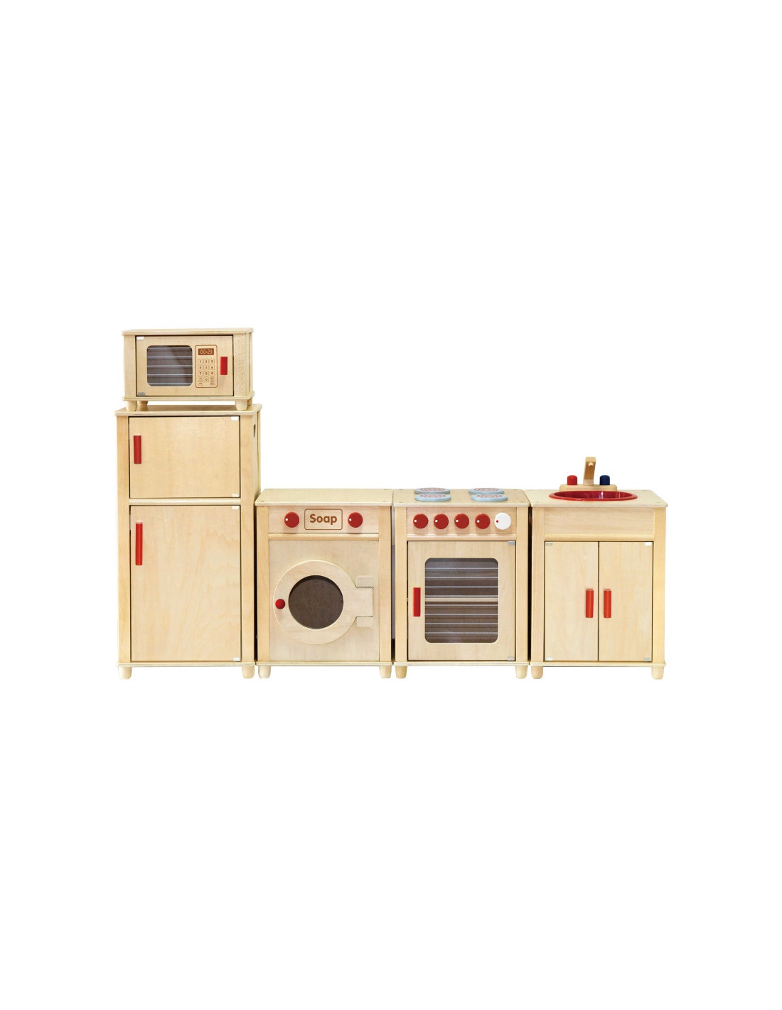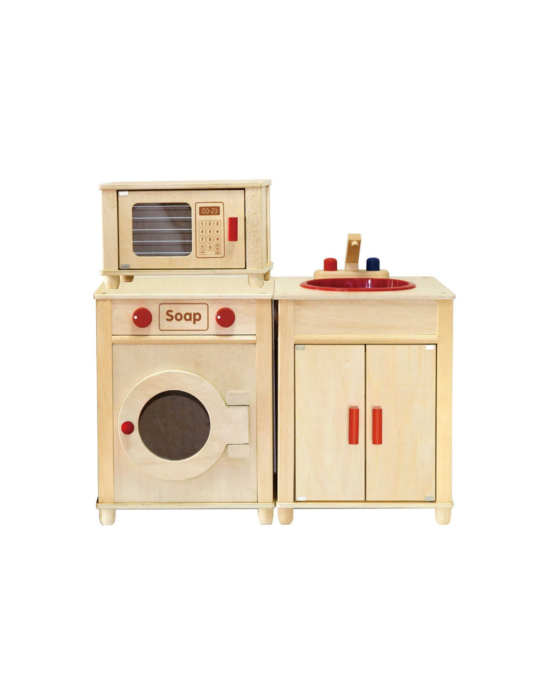 Medinis natūralus didelis virtuvės komplektas vaikams iš „Viga“ leidžia keliems vaikams žaisti vienu metu. Jis puikiai tinka kaip žaidimų aikštelė vaikams nuo 3 metų amžiaus. Virtuvę sudaro viryklė su orkaite, spintelė su kriaukle, šaldytuvas, mikrobangų krosnelė ir skalbimo mašina. Pagaminti iš buko medienos ir beržo faneros, elementus galima išdėstyti bet kokia tvarka . Kiekvienos dalies plotis yra 40 cm, o gylis – 34 cm. Bendras komplekto plotis yra 160 cm, aukštis nuo žemės iki stalviršio – 53 cm, o bendras aukštis – 120 cm. Komplektą reikia surinkti savarankiškai pagal pridėtas nuoseklias instrukcijas.