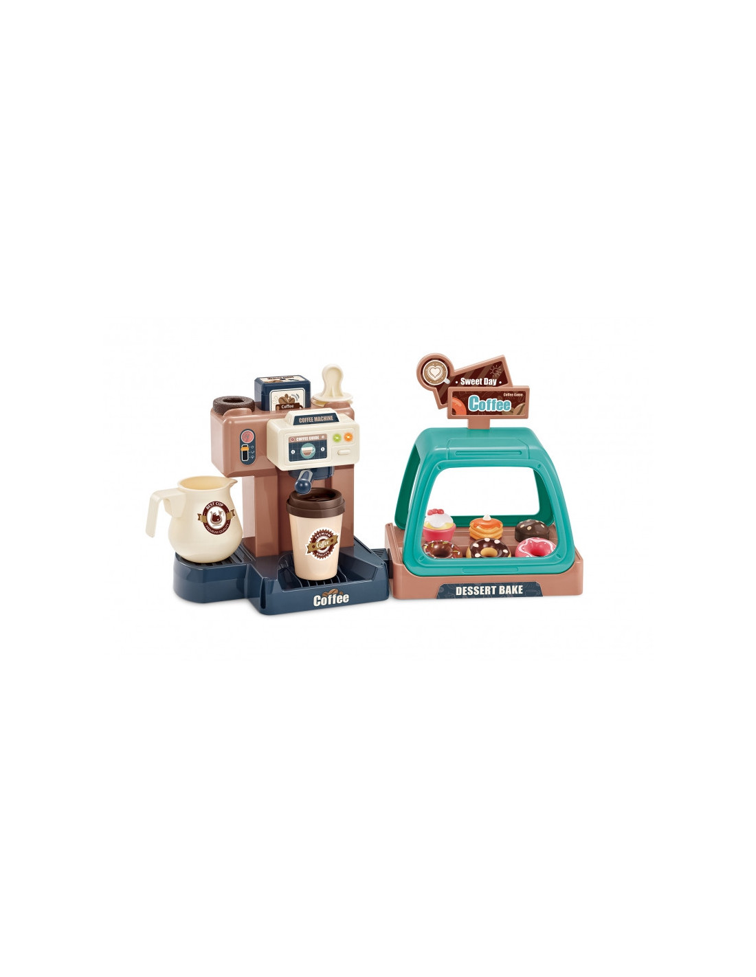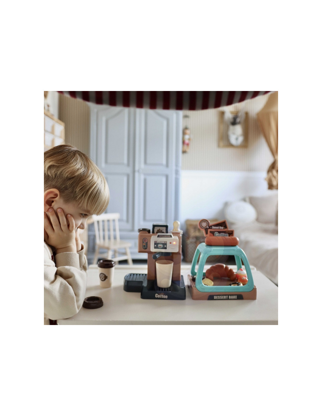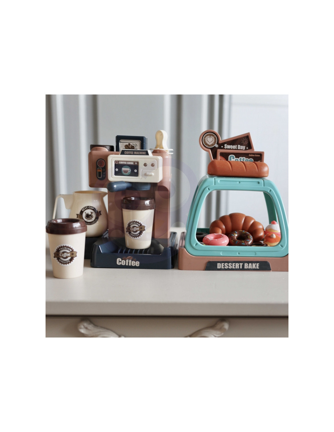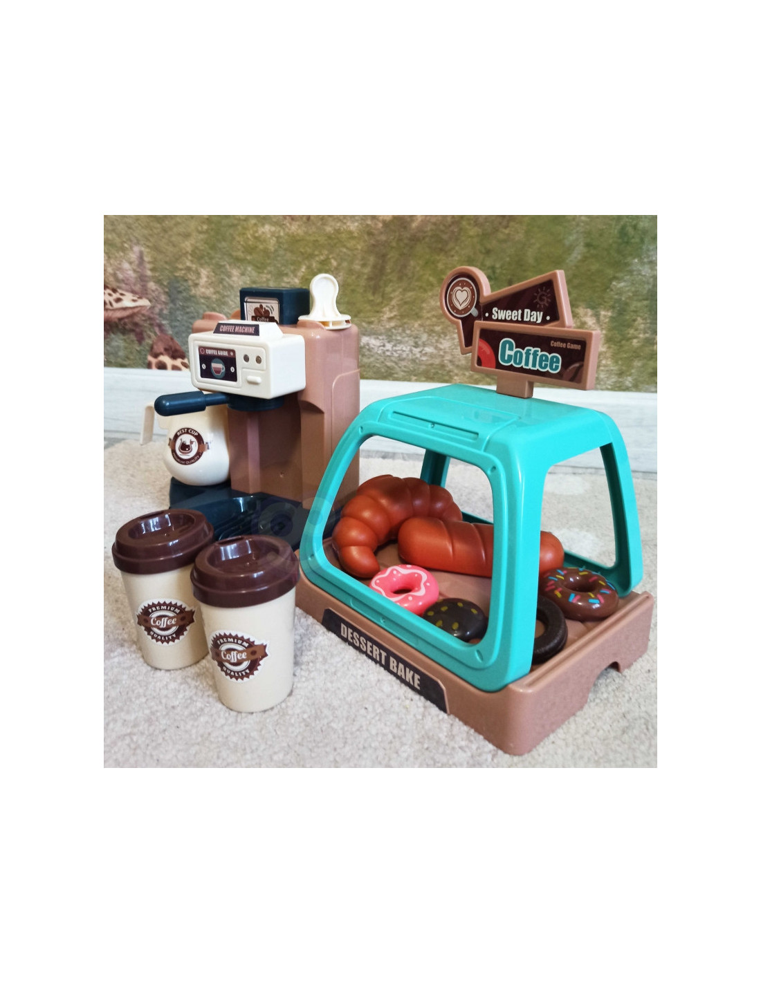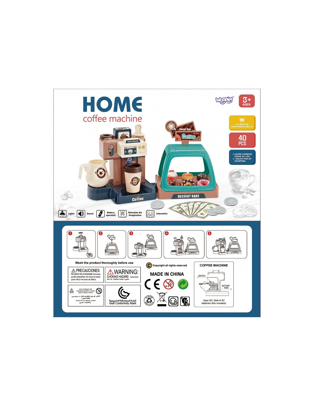 WOOPIE kavos aparatas – puikus rinkinys vaikams, kurie mėgsta apsimesti suaugusiaisiais . Be kavos aparato ir sausainių vitrinos , rinkinyje yra įvairių skonių saldumynų, tokių kaip spurgos ir keksiukai. Kavos aparatą ir vitriną galima sujungti arba naudoti atskirai . Kavos aparatas turi vandens tekėjimo funkciją ; tiesiog įpilkite vandens į indą iš viršaus, pritvirtinkite portafiltrą, padėkite po juo puodelį ir kava paruošta! Jis taip pat skleidžia malimo ir plikymo garsus , užsidega mirksinti raudona lemputė , o kai kava paruošta, užsidega žalia lemputė ir pasigirsta signalas. Pritvirtinus filtro angą, taip pat galite išgirsti pilamos kavos garsą. Šis žaislas tikrai sužavės bet kurį vaiką. Žaidimai parduotuvėje su draugais padės lavinti sąmoningumą ir socialinius įgūdžius.