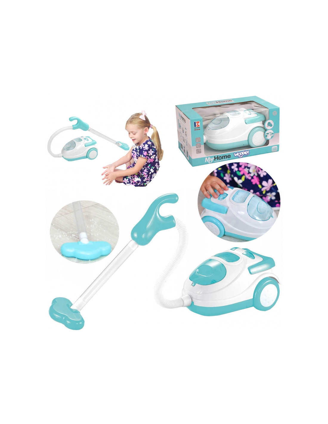 Woopie “ dulkių siurblys – puikus pasirinkimas mažiesiems namų pagalbininkams. Siurbimo funkcija ir garsas valymą paverčia dar tikroviškesniu ir įdomesniu. Nuimamą dirbtinių šiukšlių konteinerį lengva ištuštinti. Dulkių siurblys turi reguliuojamą šepetį , todėl vaikai gali reguliuoti kampą siurbdami. Žaislas pagamintas iš aukštos kokybės , vaikams saugių medžiagų . Dulkių siurblys turi patogią rankeną , leidžiančią vaikams nešiotis dulkių siurblį iš vienos vietos į kitą. Tai ideali dovana , padėsianti vaikams mėgdžioti savo tėvus , nes kuris vaikas nenorėtų būti suaugęs?