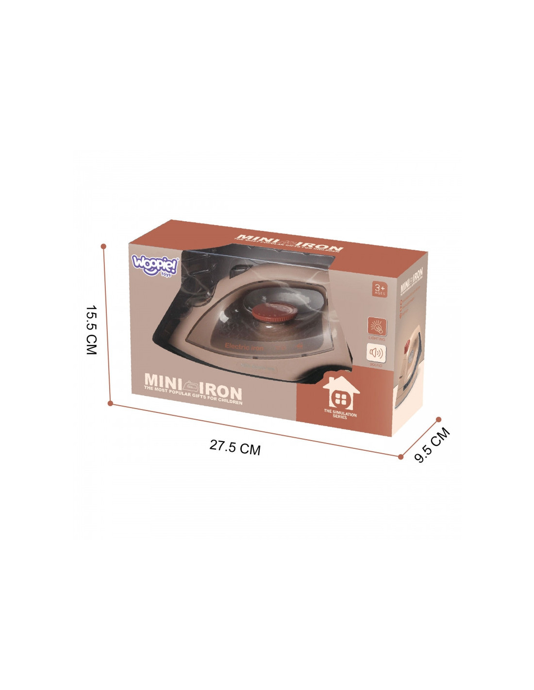 WOOPIE lygintuvas su purkštuvu puikiai imituoja tikrą lygintuvą ir yra saugus vaikams, nes neįkaista. Žaislas turi daug funkcijų , kurios papildo žaidimą smagiai: šviečiančią LED lemputę , garso efektus ir purškimo funkciją , kai lygintuvas pripildytas vandens. Žaislas veikia ir be vandens. Tai puikus žaislas vaikams, kurie mėgsta mėgdžioti savo tėvus kasdienės veiklos metu.