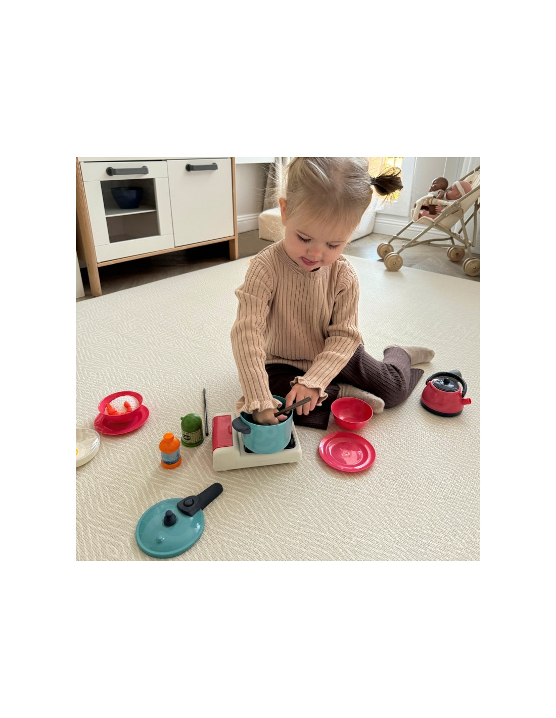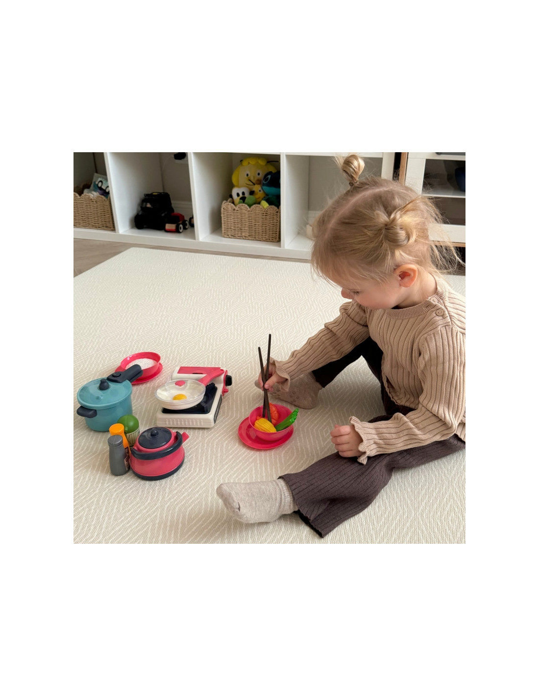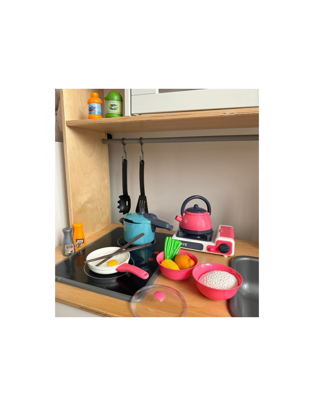 „WOOPIE“ prekės ženklo virtuvės rinkiniai – tai nuostabus žaislas, leidžiantis mažiesiems pasijusti mažuoju virėju. Jie suteikia daug galimybių kūrybiškam ir lavinančiam žaidimui. Vaikų virtuvės rinkiniuose yra įvairių priedų, tokių kaip lėkštės, dubuo, virdulys ir keptuvė su dangčiu. Tai leidžia valandų valandas kūrybiškai žaisti, lavinti rankų įgūdžius ir vaizduotę. Gaminti kartu gali būti tikrai smagu! Tačiau prieš pradedant mažyliui padėti jums tikroje virtuvėje, pravartu jį su viskuo supažindinti žaidžiant!
