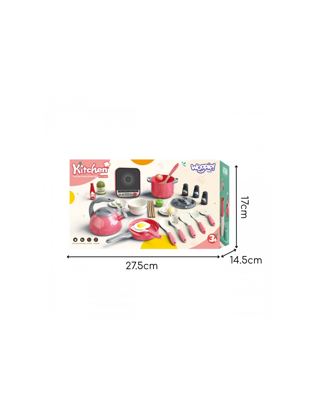 Šis virtuvės žaidimų rinkinys iš prekės ženklo Woopie yra puiki dovana bet kuriam mažajam virėjui! Žaislas leidžia vaikams imituoti suaugusiuosius ir žaisti vaidmenimis, lavina jų kūrybiškumą, vaizduotę ir rankų darbo įgūdžius. Rinkinyje yra viskas, ko reikia svajonių patiekalui paruošti. Rinkinyje yra iki 30 daiktų, įskaitant puodus, keptuvę su keptuve, virdulį ir net indukcinę kaitlentę su šviesos efektais. Papildomi priedai, tokie kaip stalo įrankiai, daržovės ir prieskoniai, padaro žaidimą itin tikrovišką ir įtraukiantį. Tai puikus būdas mokytis žaidžiant, ugdyti socialinius įgūdžius ir leisti laiką su tėvais.
