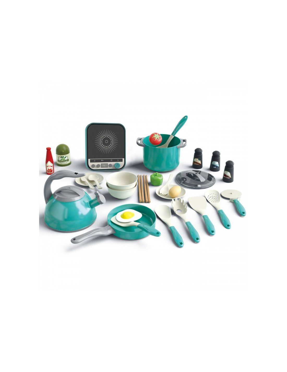 Šis išsamus virtuvės žaidimų rinkinys iš prekės ženklo Woopie yra puiki dovana bet kuriam mažajam virėjui! Žaislas leidžia vaikams imituoti suaugusiuosius ir žaisti vaidmenimis, lavina jų kūrybiškumą, vaizduotę ir rankų darbo įgūdžius. Rinkinyje yra viskas, ko reikia svajonių patiekalui paruošti.Rinkinyje yra iki 30 daiktų, įskaitant puodus, keptuvę su keptuve, virdulį ir net indukcinę kaitlentę su šviesos efektais. Papildomi priedai, tokie kaip stalo įrankiai, daržovės ir prieskoniai, padaro žaidimą itin tikrovišką ir įtraukiantį. Tai puikus būdas mokytis žaidžiant, ugdyti socialinius įgūdžius ir leisti laiką su tėvais.