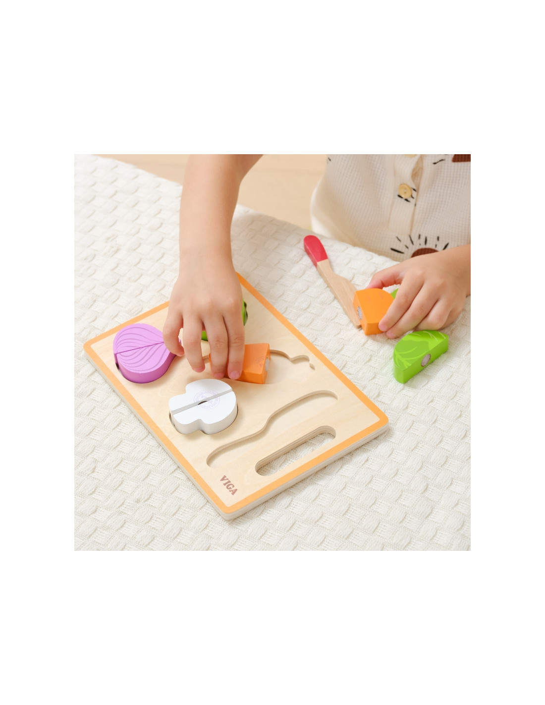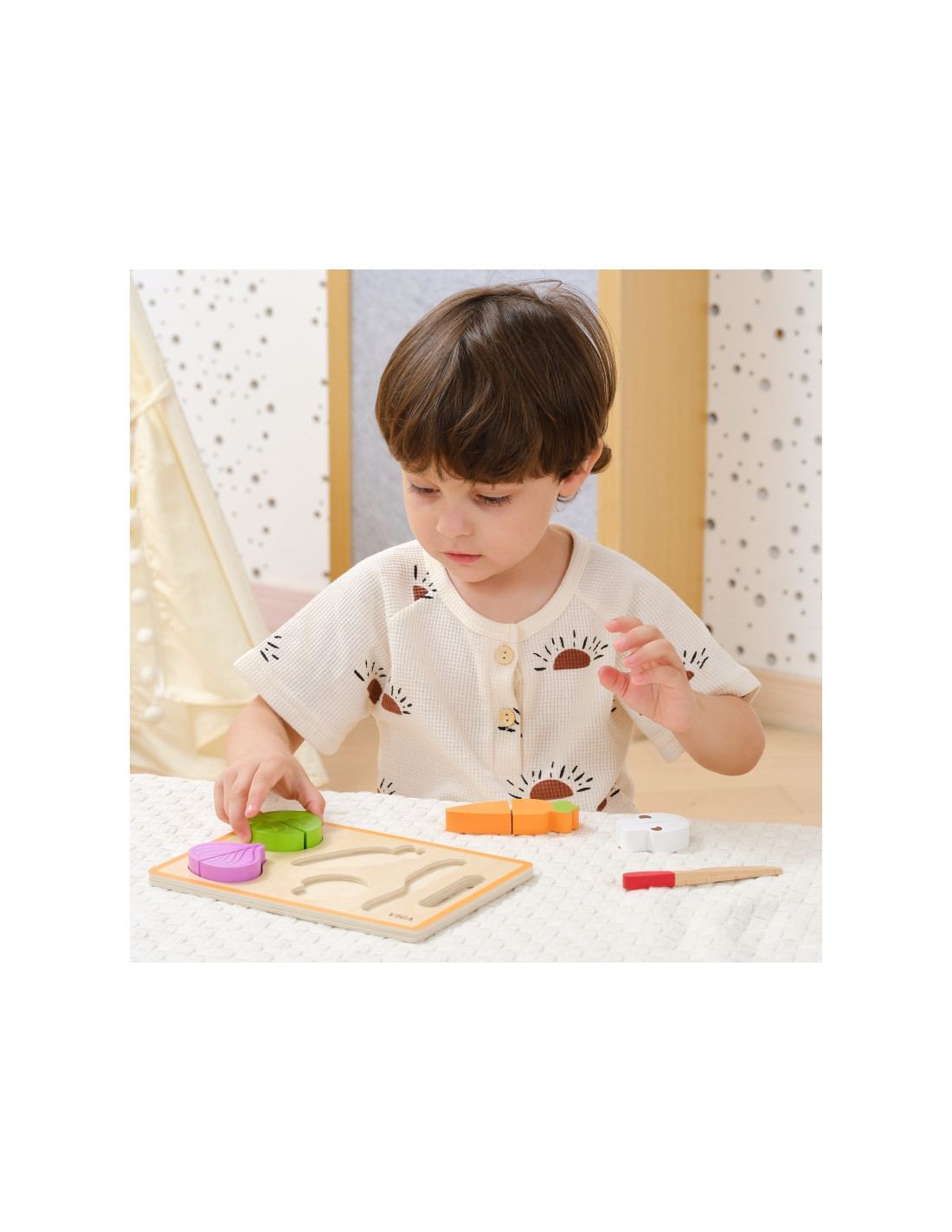 VIGA Medinė Montessori mokomoji dėlionė Daržovės pjaustymui