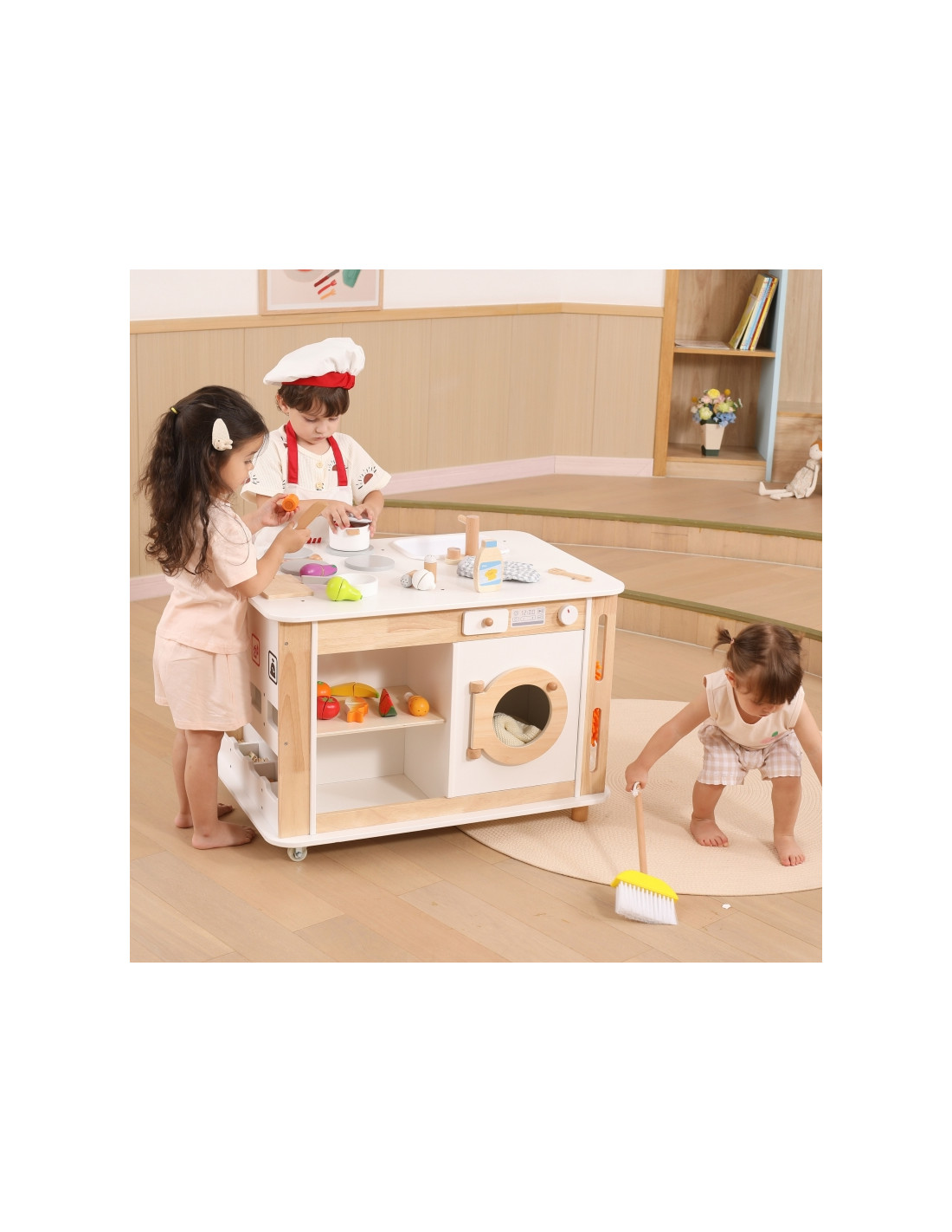 Mažyliai gali gaminti maistą, skalbti, tvarkytis ir mokytis apie atliekų rūšiavimą , žaisdami vaidmenimis realistiškas namų scenas. Interaktyvūs elementai, tokie kaip ledo generatorius ar vejapjovė su garso efektais , žaidimą paverčia dar įdomesniu. Salos stilius ir daugybė priedų skatina bendradarbiavimą ir lavina socialinius įgūdžius. Tai puiki dovana vaikams nuo 3 metų , derinanti kasdienį mokymąsi su kūrybišku žaidimu!