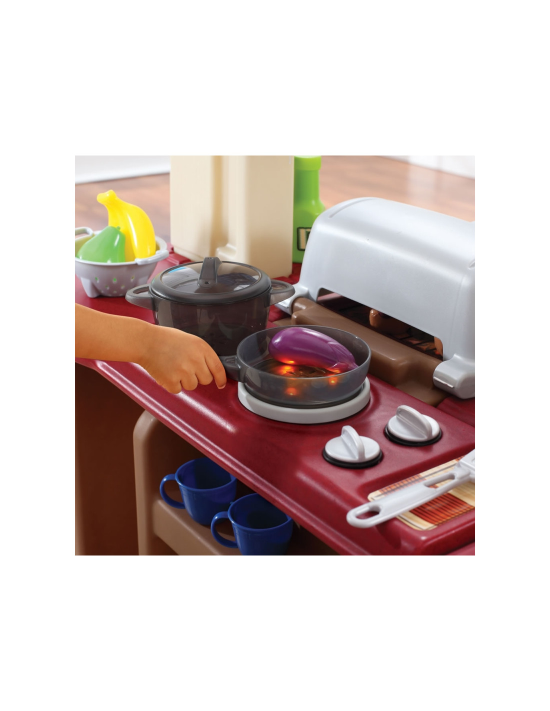 Įženkite į virtuvės komplektą ir atraskite šios trijų pusių žaidimų erdvės detales – nuo nerūdijančio plieno prietaisų ir lietų grindų iki baltų spintelių, ištraukiamos daiktadėžės ir ypač didelio stalviršio. Specialiais virtuvės reikmenimis įjunkite tikroviškas kaitlentės šviesas ir garsus, o po vakarėlio naudokite įmontuotą kriauklę su besisukančiu čiaupu indams plauti. Be to, ši didelė netikra virtuvė turi 103 dalių vertinimo rinkinį, kad vaikai galėtų nedelsdami pradėti ruošti maistą kitam susibūrimui. Vaikai nekantrauja pradėti gaminti ir žaisti savo virtuvėje!