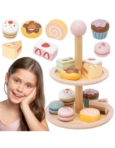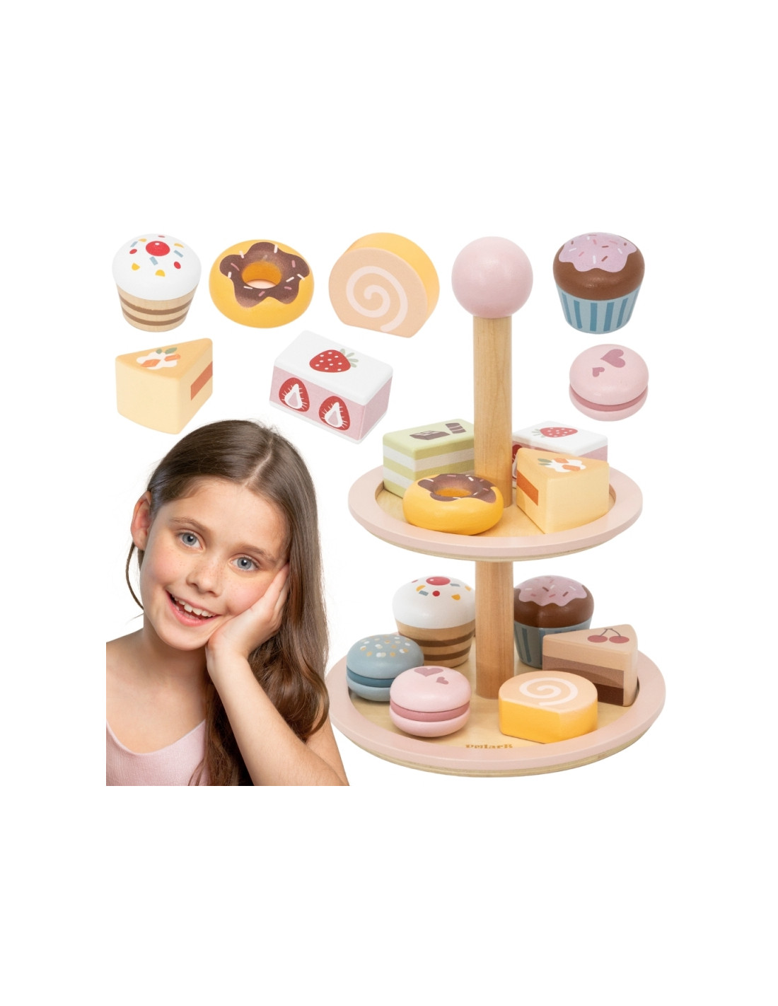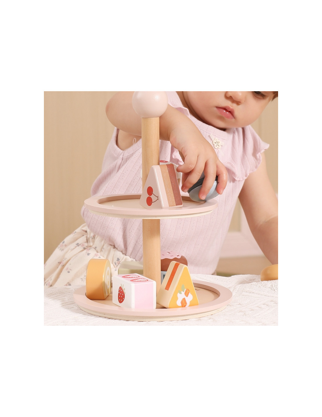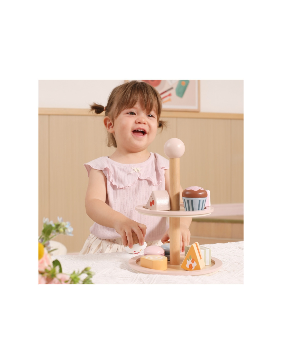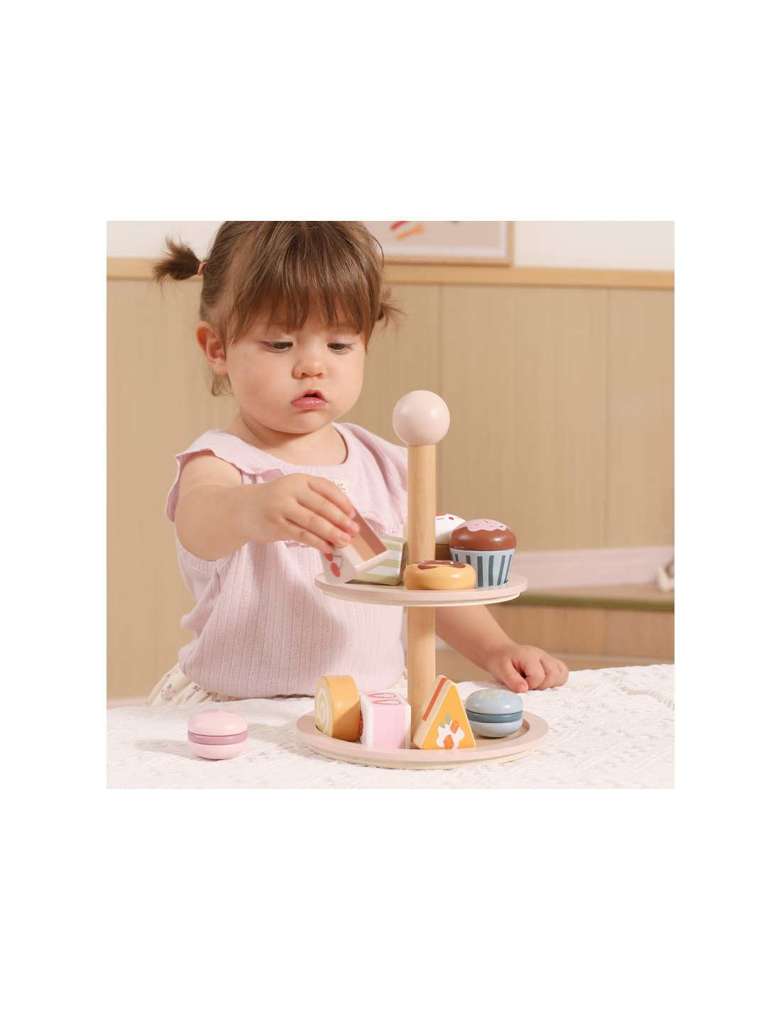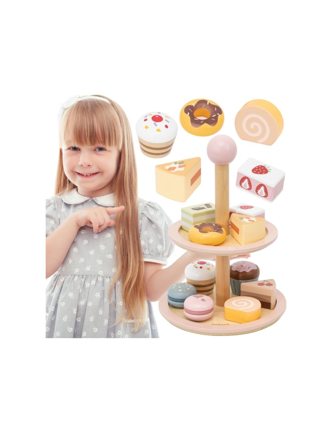Pakvieskite savo vaiką į kavinės linksmybių pasaulį! „Viga PolarB“ medinis torto stovas yra elegantiškas, dviejų aukštų torto stovas, pripildytas spalvingų saldumynų, kurie praskaidrins bet kokį popietės arbatėlės vakarėlį. Rinkinį sudaro 10 žavingų sausainių ir pyragaičių, pagamintų iš saugių, netoksiškų medžiagų. Lygūs kraštai ir tobulas dydis leidžia mažoms rankytėms lengvai juos suimti. Tai ne tik puiki pramoga, bet ir būdas lavinti vaiko vaizduotę, kūrybiškumą ir socialinius įgūdžius.