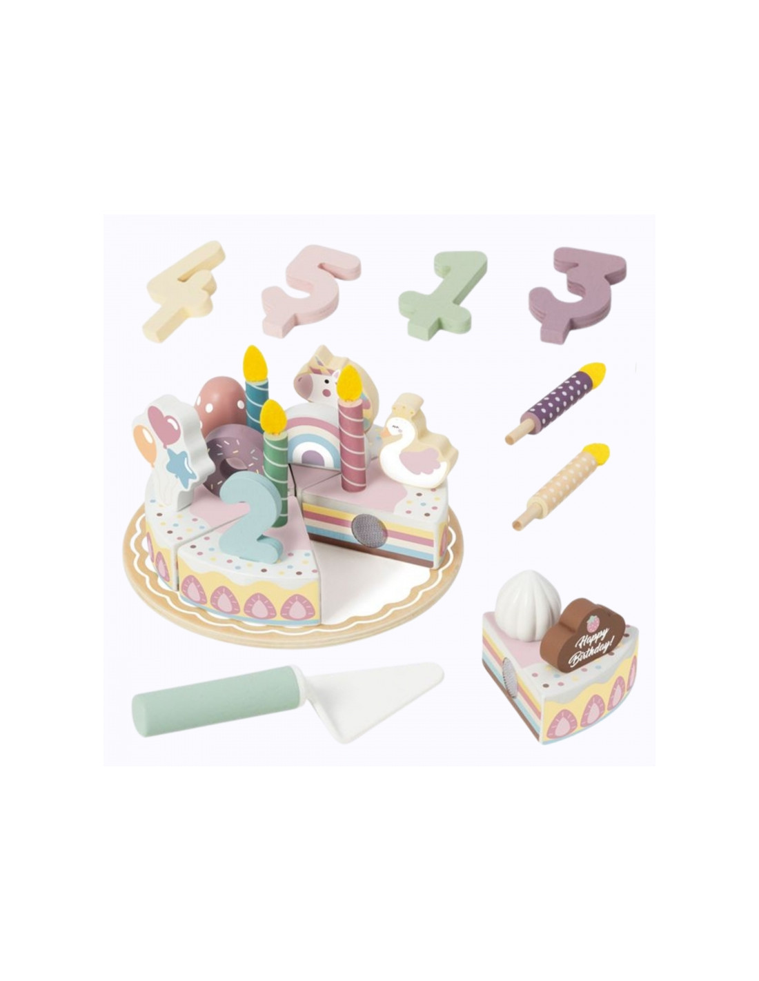 Kiekvienas vaikas svajoja pakviesti draugus į įsimintiniausią gimtadienio vakarėlį. Šis gražiai sukurtas gimtadienio torto žaidimų rinkinys siūlo daugiau nei žaislą – tai vartai į linksmybių pasaulį, kuriame kiekvienas gali surengti tobulą vakarėlį. Medinės detalės yra kruopščiai pagamintos iš švelnių, raminančių atspalvių, o kiekviena detalė suteikia magijos. Jūsų vaikas galės sukurti šimtus unikalių vakarėlio scenarijų, formuodamas savo prisiminimus ir žaidimo taisykles.