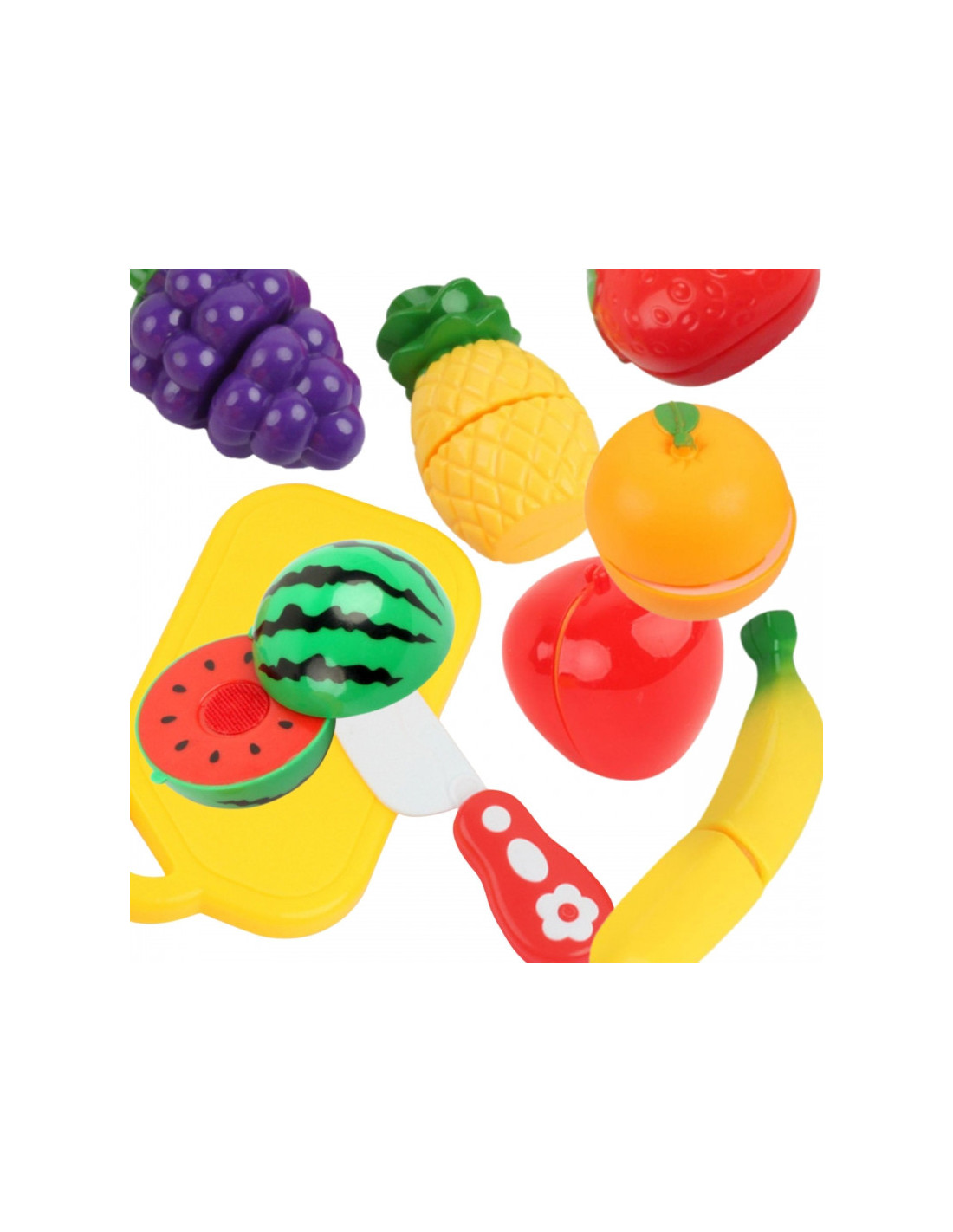 Vaisių pjaustymas ant lentos puikiai tinka ir darželyje, ir namuose. Rinkinyje yra 8 per pusę perpjauti vaisiai, kuriuos galima sujungti "Velcro", taip pat žaislas NO Sharp peilis ir pjaustymo lenta. Vaikas galės mėgdžioti veiksmus iš kasdienio gyvenimo. tokio tipo žaislai lavina smulkiąją motoriką, kuri yra bendro vikrumo pagrindas. smulkioji motorikaapibrėžiama kaip pirštų ir rankų judesiai. Tai judesiai, kuriuos atliekant dalyvauja nedidelė kūno dalis, tačiau reikia sutelkti dėmesį ir sutelkti dėmesį į atliekamą veiklą. tai idealus žaislas tėvų ir vaiko ryšiui gilinti gaminant maistą kartu.