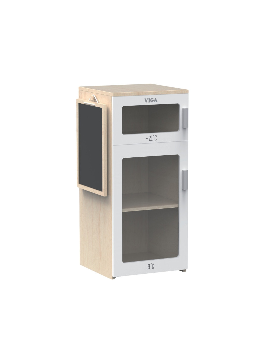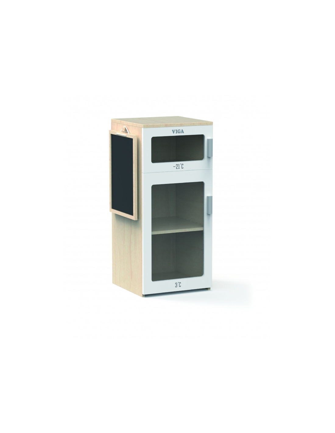 Papildykite vaiko žaidimų erdvę žaviu mediniu šaldytuvu "Viga". Šis tikroviškas žaislas - puikus būdas lavinti vaizduotę ir kūrybiškumą žaidžiant namuose. Šaldytuve yra du skyriai - šaldiklis ir šaldytuvas, todėl vaikas gali įsivaizduoti, kaip laikyti produktus tinkamoje temperatūroje. Be to, ant šaldytuvo durelių yra lentelė, kurioje mažylis gali užrašyti pirkinių sąrašą arba piešti.