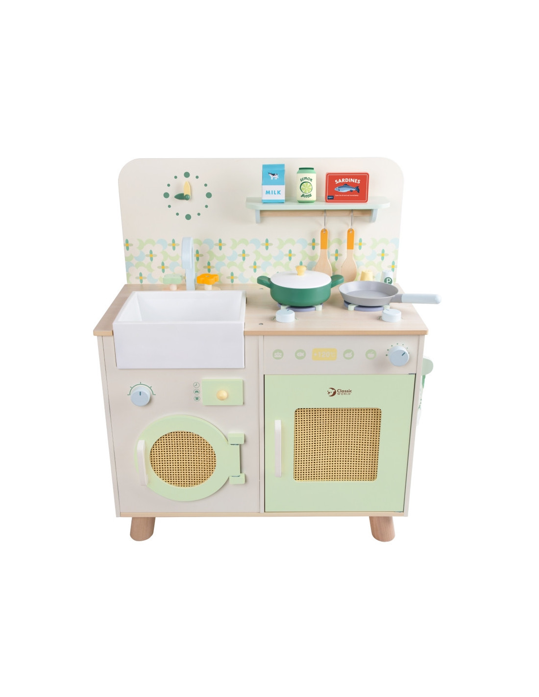 Ši stilinga, daugiafunkcinė virtuvė - puiki vieta vaikų kulinariniams nuotykiams. Natūralios spalvos, tikroviškos detalės ir priedai leidžia žaisti dar įdomiau. Vaikai gali suvaidinti kasdienes situacijas ir kartu ugdyti kūrybiškumą, savarankiškumą ir rankų darbo įgūdžius.