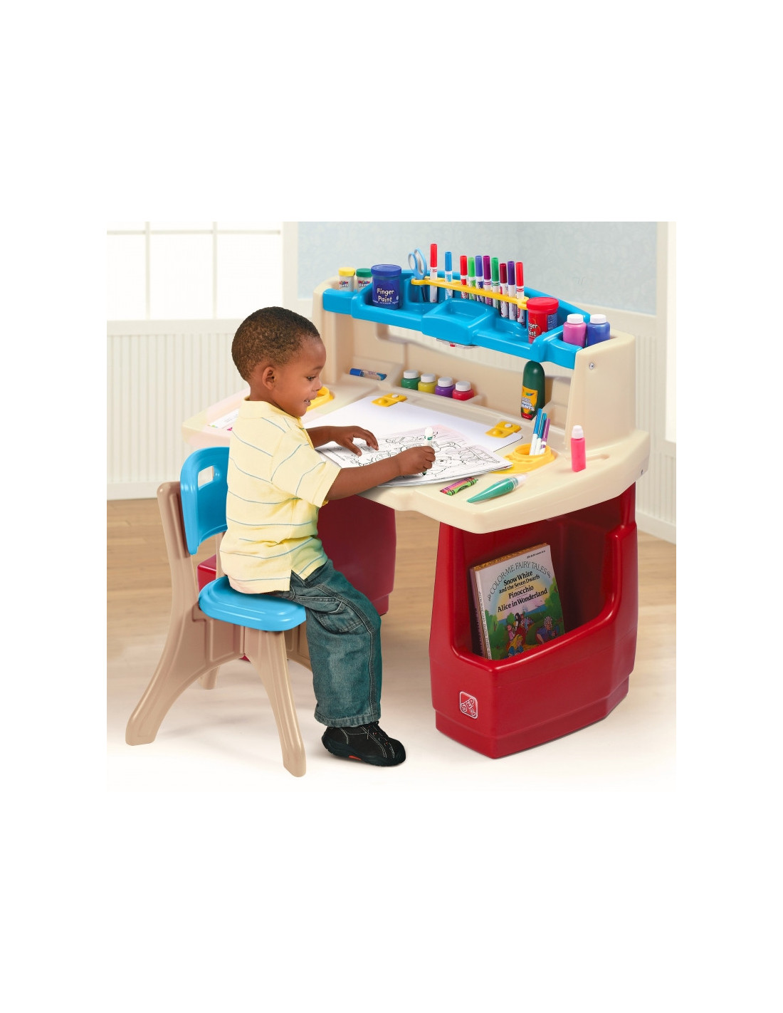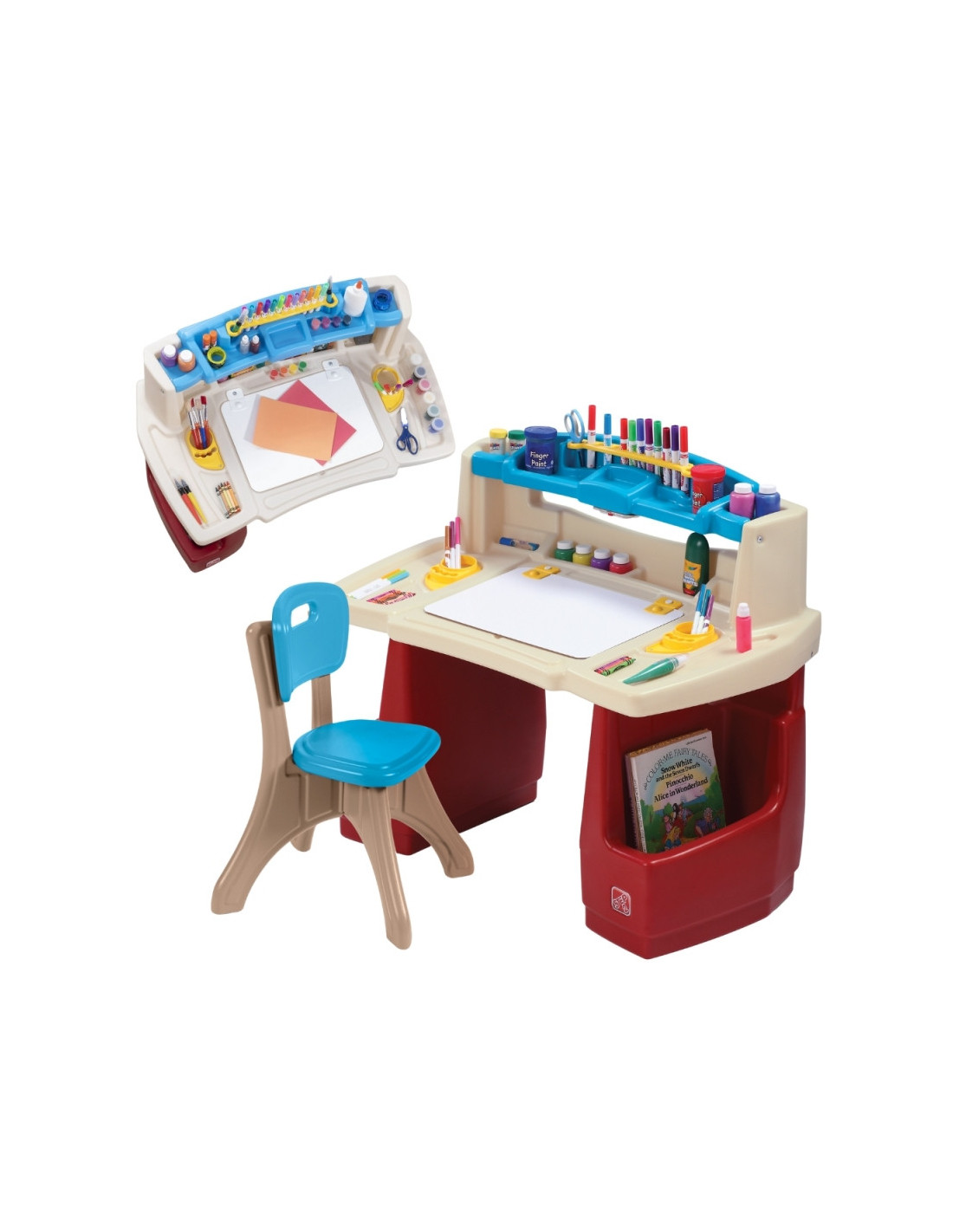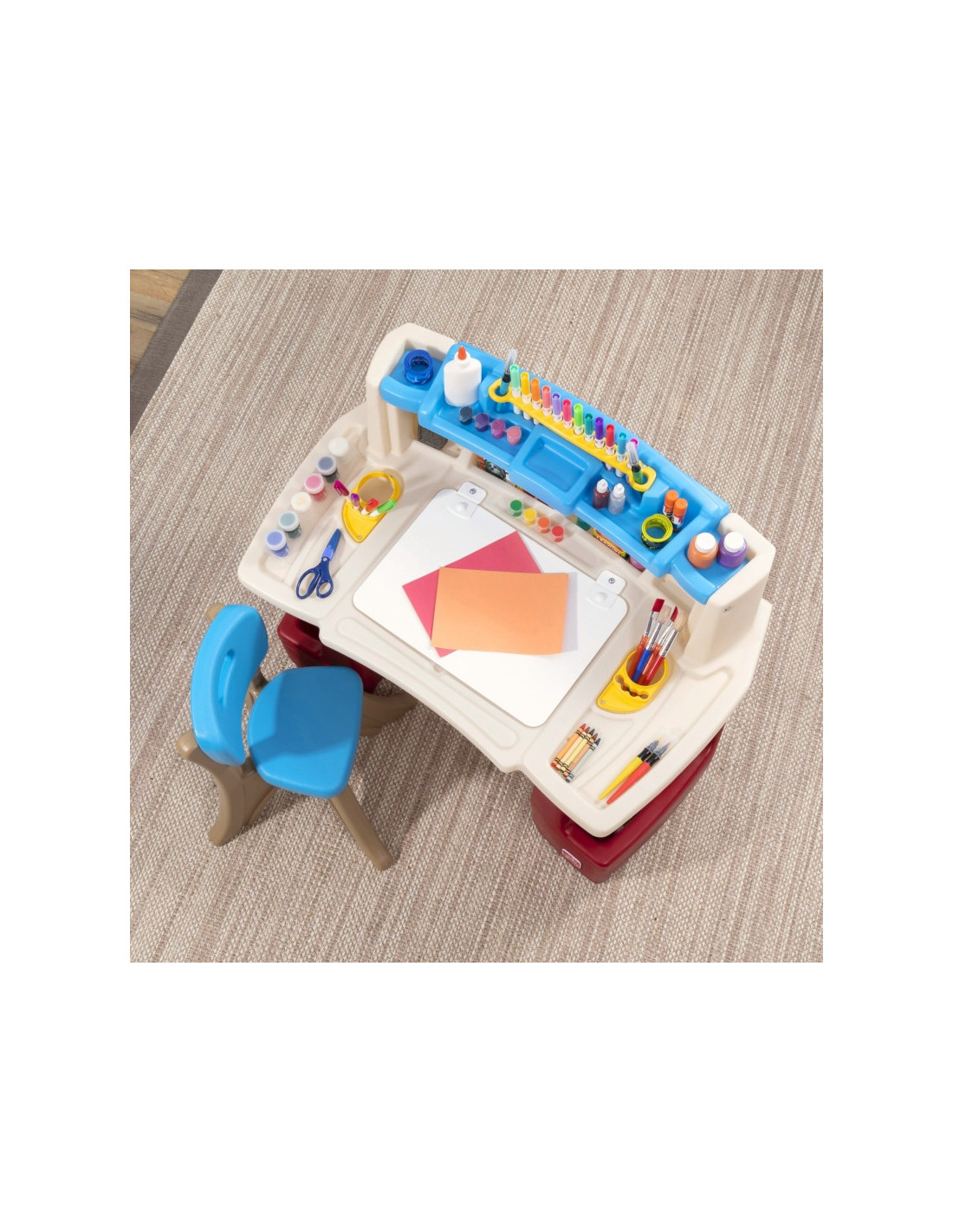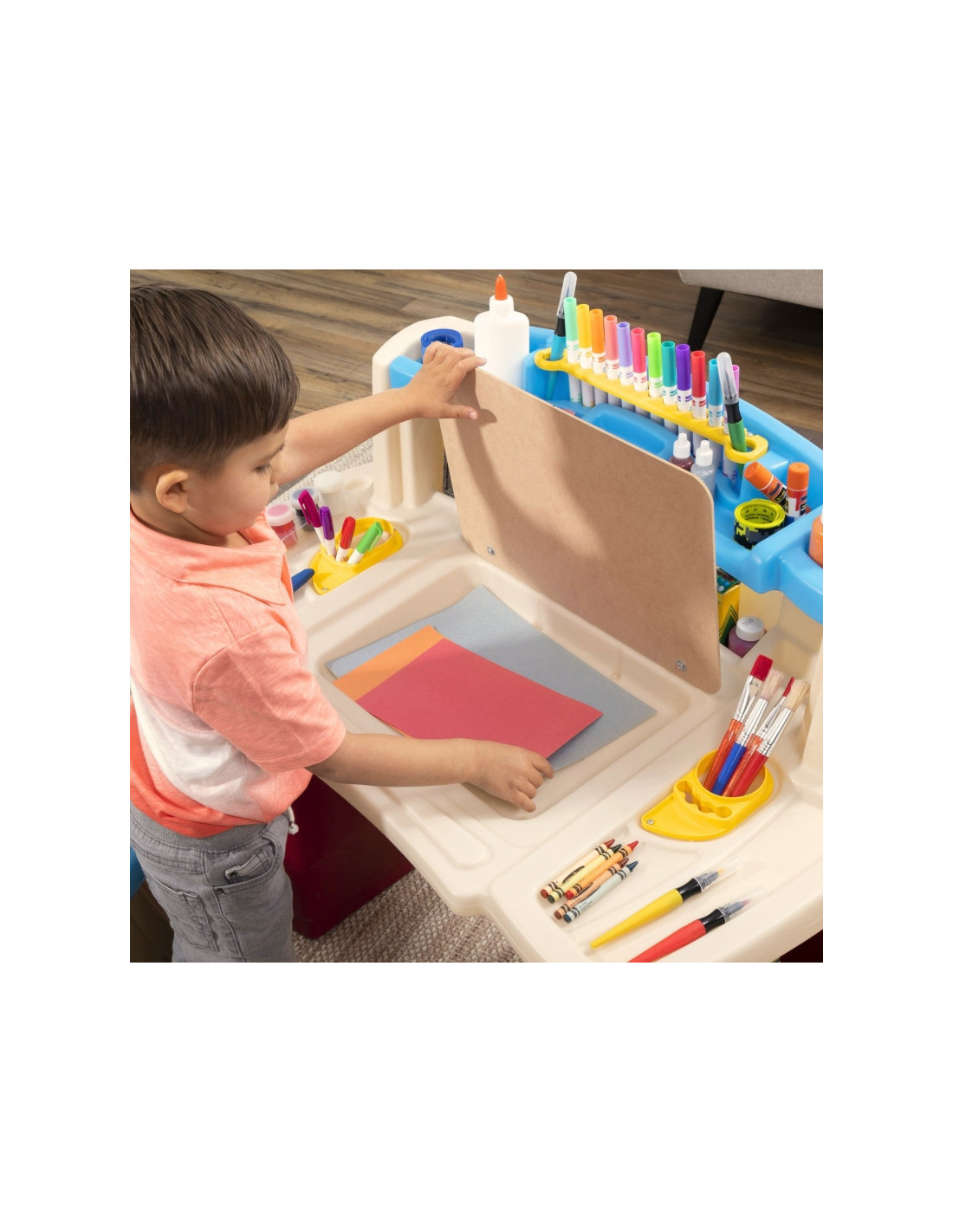 „Step2“ prabangus meno meistro stalas – puiki vieta kūrybiškam žaidimui ir mokymuisi! Šis spalvingas, funkcionalus stalo ir kėdės komplektas sužadins jūsų vaiko vaizduotę ir padės lavinti rankinius įgūdžius. Puikus pasirinkimas vaiko kambariui ar žaidimų aikštelei.
