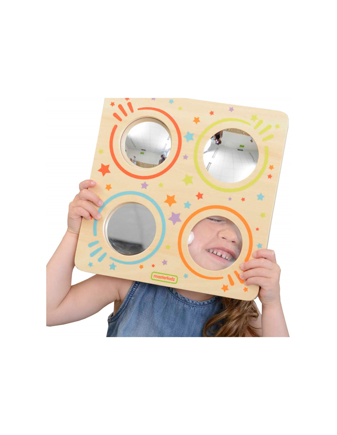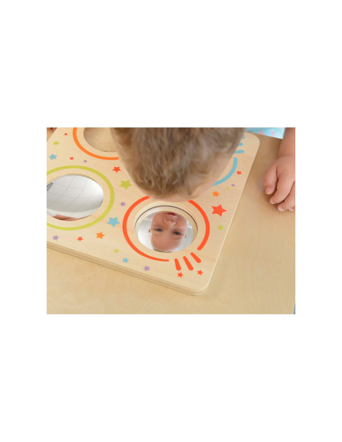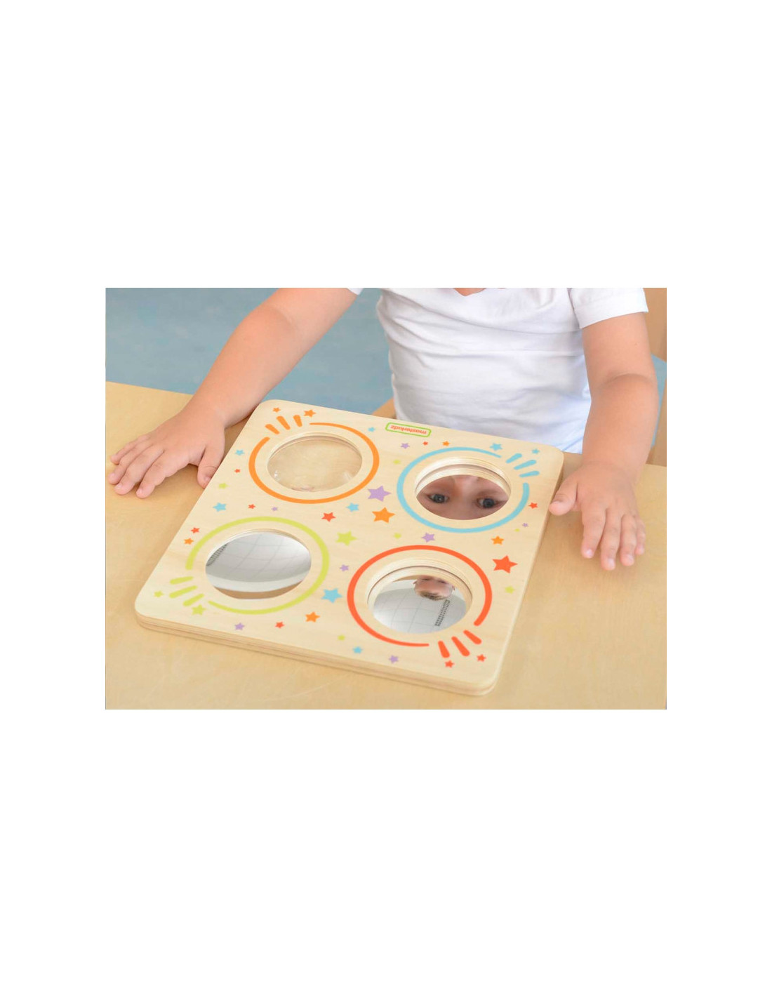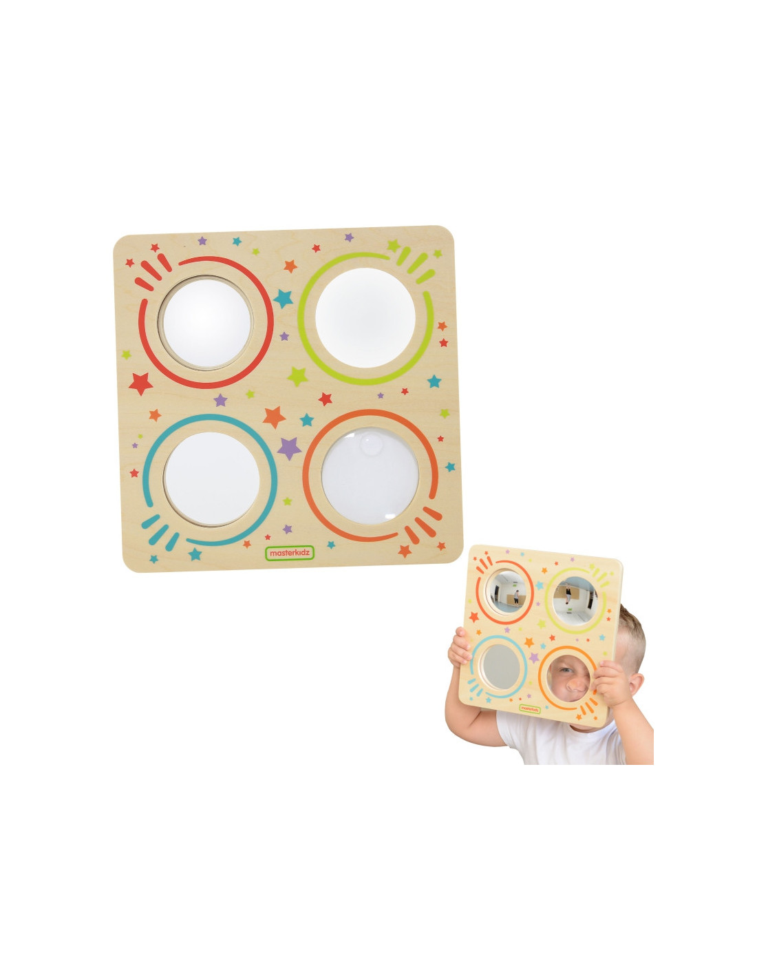 Fantastiškas sensorinis žaislas iš MASTERKIDZ , kuris ne tik linksmina, bet ir lavina. Šioje medinėje lentoje naudojami trijų tipų veidrodžiai ir lęšis, kad pasaulis būtų rodomas šiek tiek kitaip, nei matome plika akimi. Įgaubtame veidrodyje vaikai gali matyti išlenktą vaizdą , šiek tiek kitokią versiją – išgaubtame veidrodyje, ir viską priartinti didinamojo lęšio dėka. Paskutinis veidrodis yra įprastas veidrodis , kuriame vaikai gali apžiūrėti save, kad lavintų savimonę ir pasitikėjimą savimi.