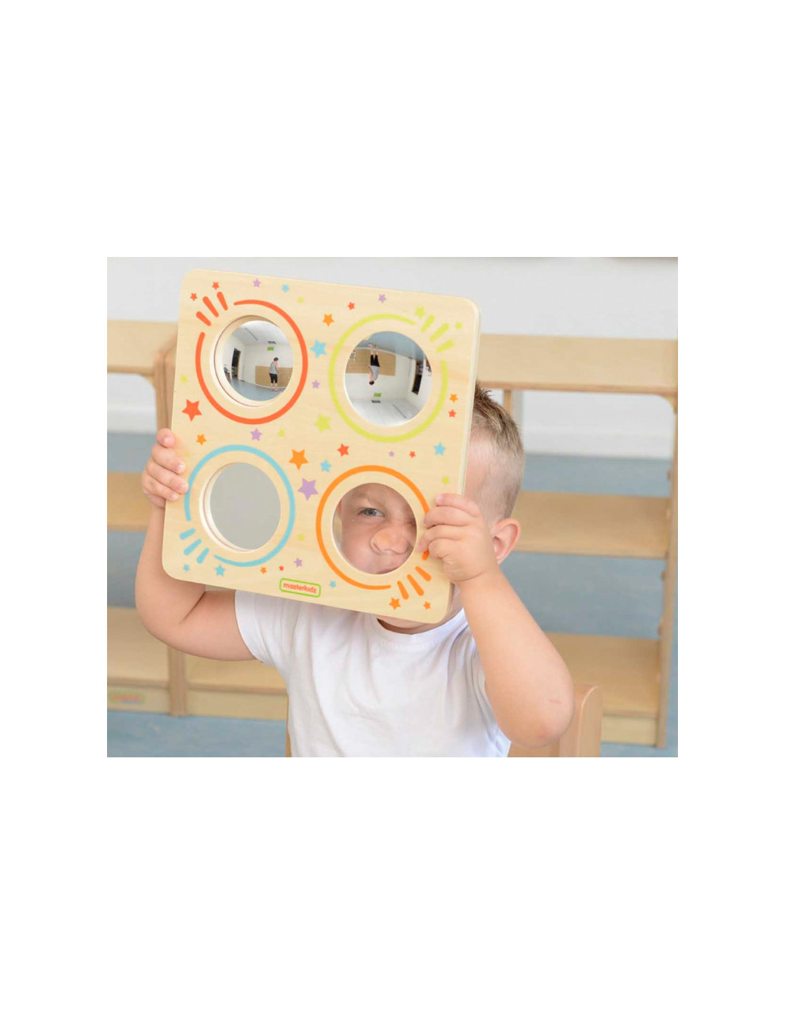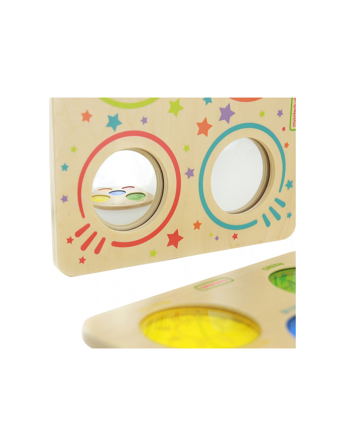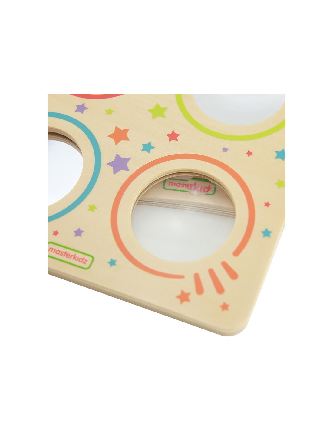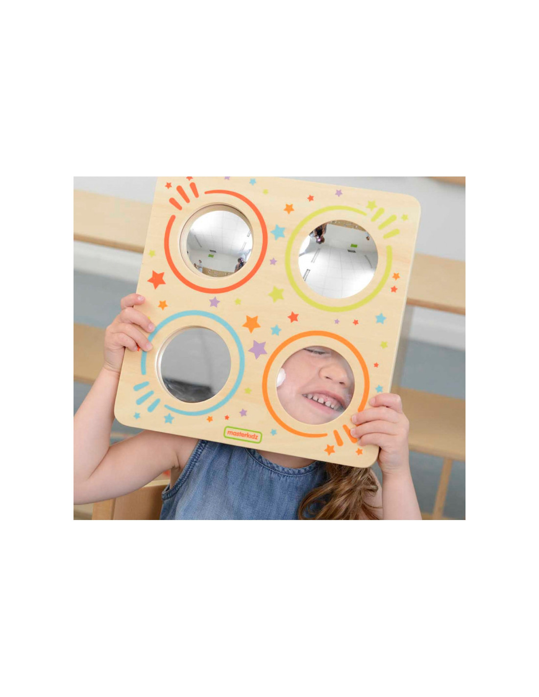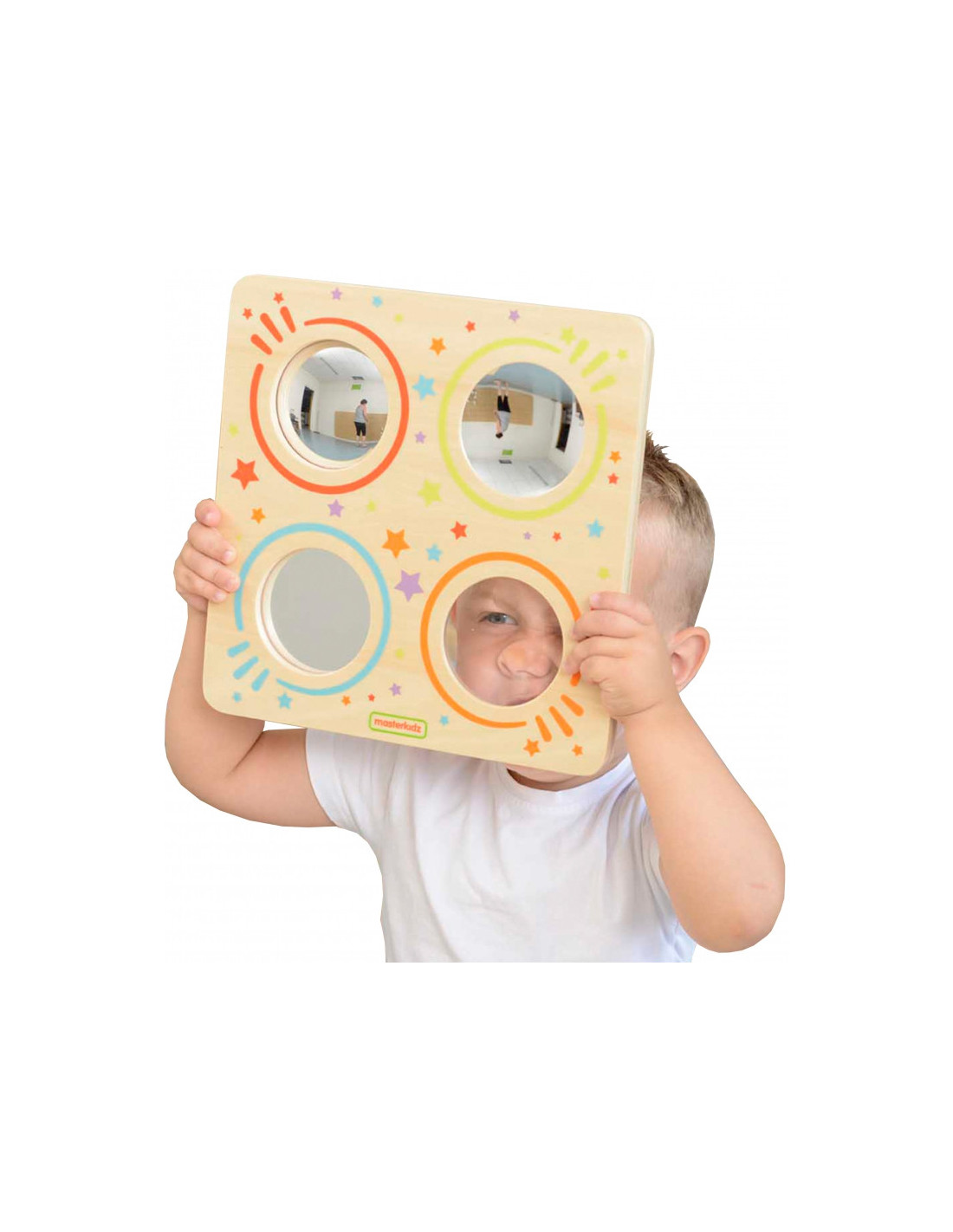 Fantastiškas sensorinis žaislas iš MASTERKIDZ , kuris ne tik linksmina, bet ir lavina. Šioje medinėje lentoje naudojami trijų tipų veidrodžiai ir lęšis, kad pasaulis būtų rodomas šiek tiek kitaip, nei matome plika akimi. Įgaubtame veidrodyje vaikai gali matyti išlenktą vaizdą , šiek tiek kitokią versiją – išgaubtame veidrodyje, ir viską priartinti didinamojo lęšio dėka. Paskutinis veidrodis yra įprastas veidrodis , kuriame vaikai gali apžiūrėti save, kad lavintų savimonę ir pasitikėjimą savimi.
