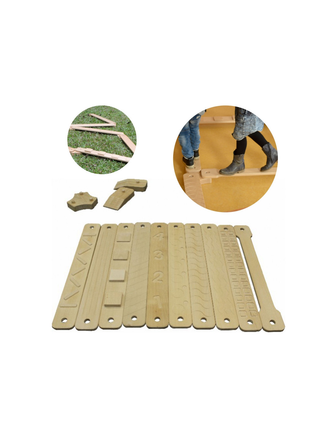Nuostabus žaislas vaikams, kuris padės lavinti įvairius jūsų vaikų įgūdžius! Šis medinių lentelių rinkinys pusiausvyrai ir pusiausvyrai lavinti susideda iš 10 sijų , kuriomis mažyliai gali vaikščioti. Jas galima išdėstyti bet kokiu keliu ir deriniu, užtikrinant visada įdomų ir unikalų žaidimą. Lentos yra šiek tiek pakeltos, o kraštai suapvalinti, todėl žaidimas yra visiškai saugus .