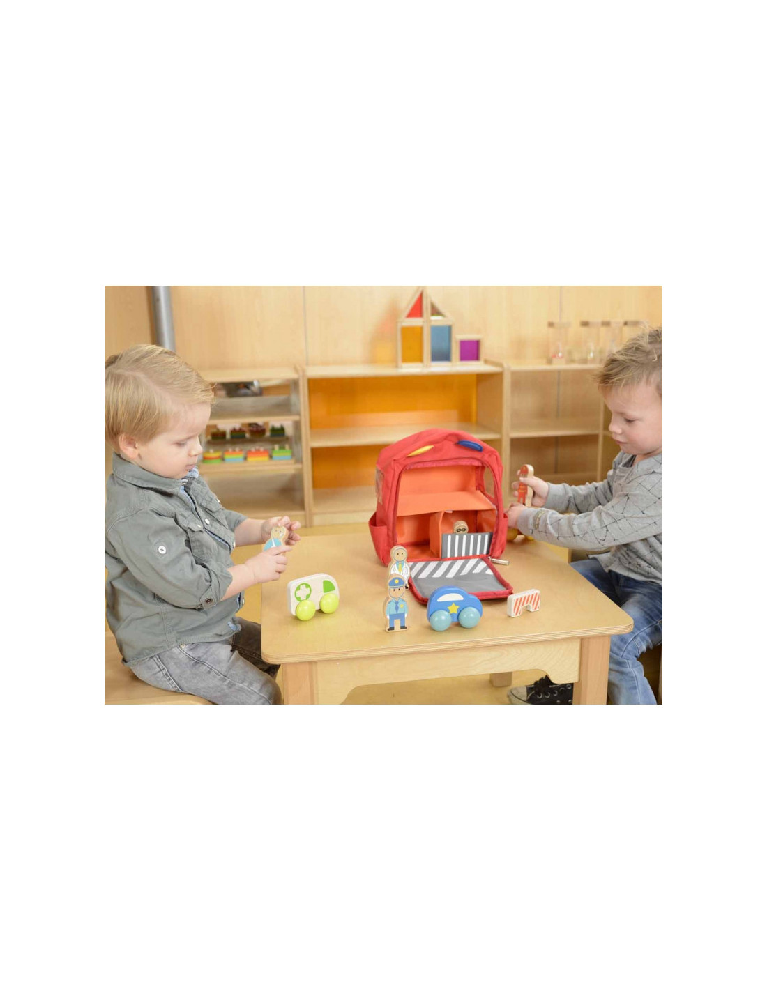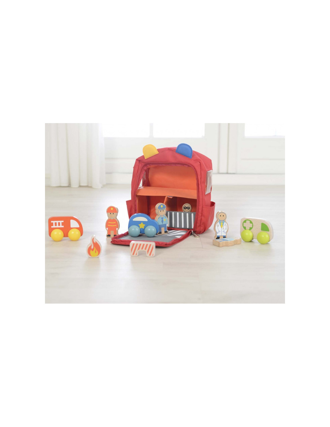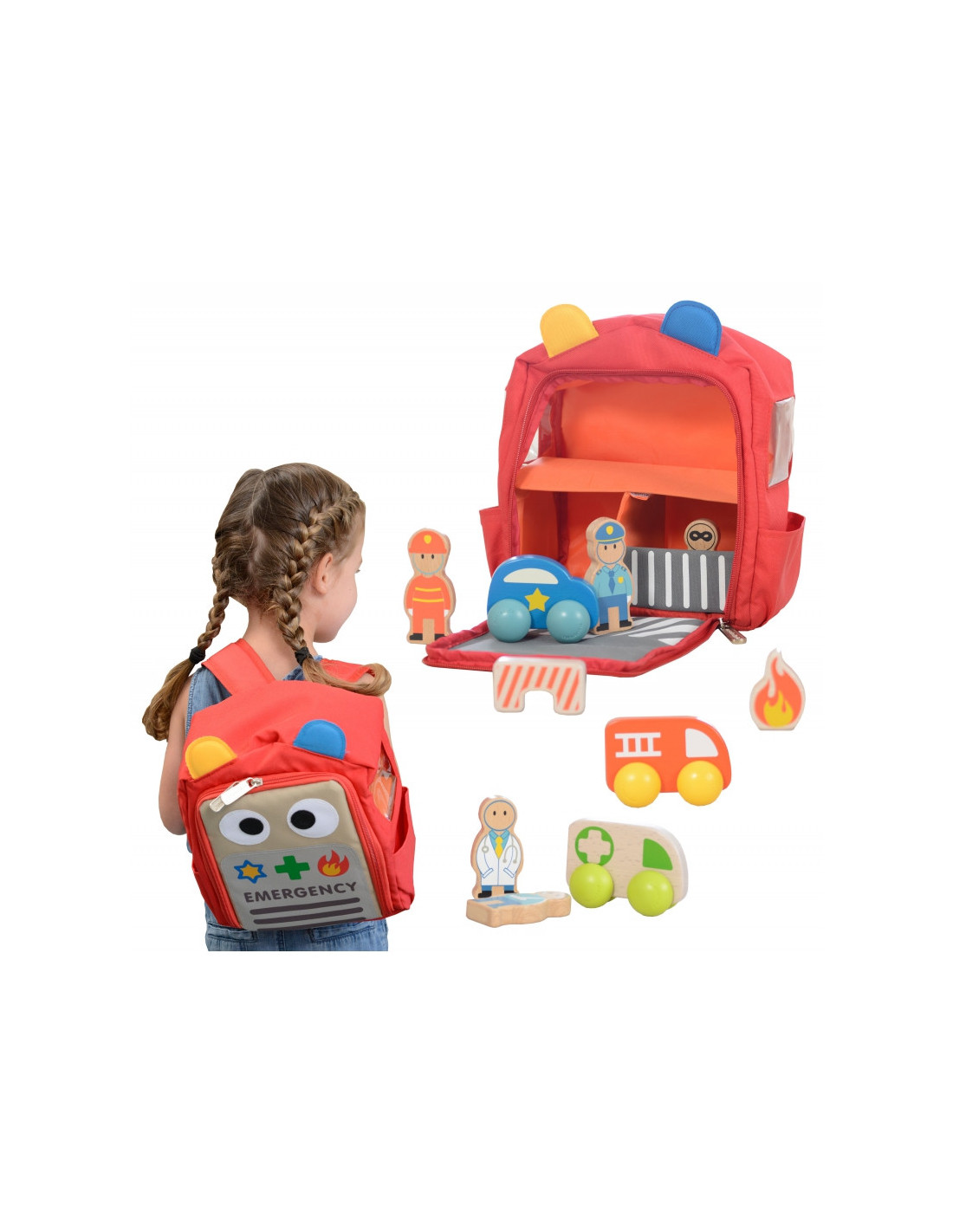 Masterkidz avarinis apsaugos centras kuprinėje yra novatoriškas rinkinys, leidžiantis vaikams žaisti su visomis apsaugos tarnybomis vienoje vietoje. Dėl išmanaus dizaino kuprinę per kelias sekundes galima transformuoti į avarinį centrą su ligonine, gaisrine ir policijos nuovada. Žaislas yra lengvas, lengvai nešiojamas ir sulankstomas, todėl jį malonu pasiimti su savimi į kiekvieną kelionę.