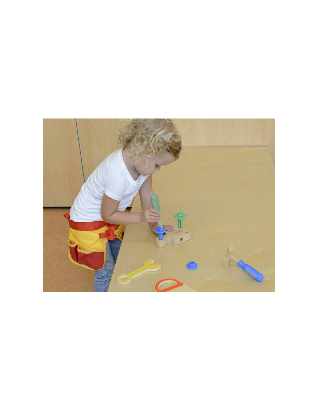 Puikus žaislas vaikams, leidžiantis jiems tapti remonto ir renovacijos specialistais ! Rinkinį sudaro 12 medinių įrankių , todėl lengva atlikti bet kokį darbą. Rinkinyje taip pat yra įrankių diržas, leidžiantis nešiotis visus įrankius.