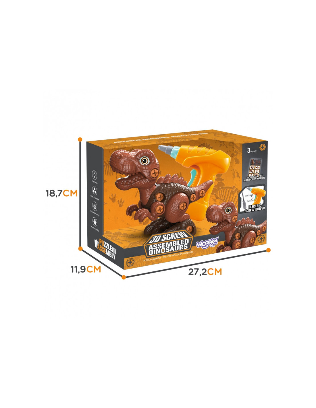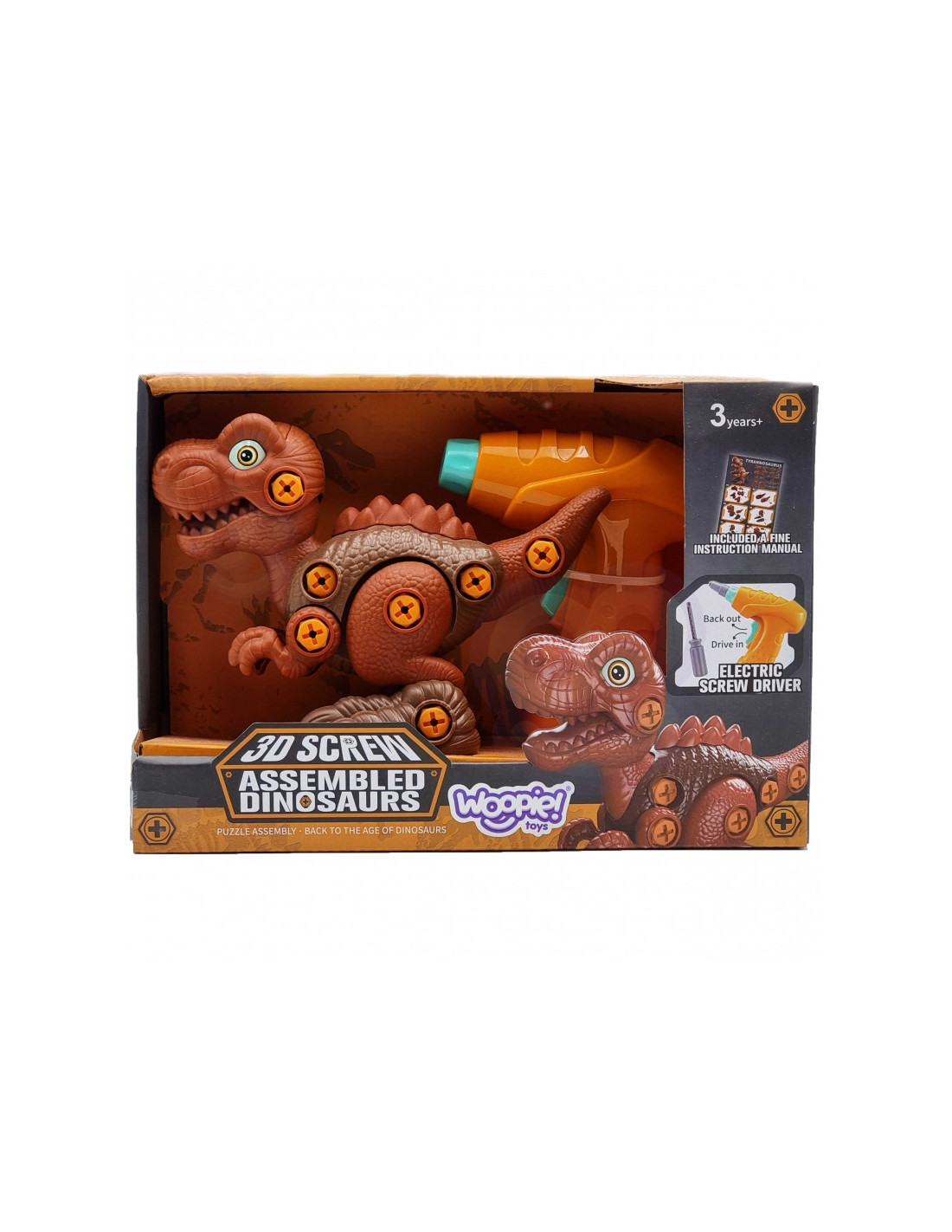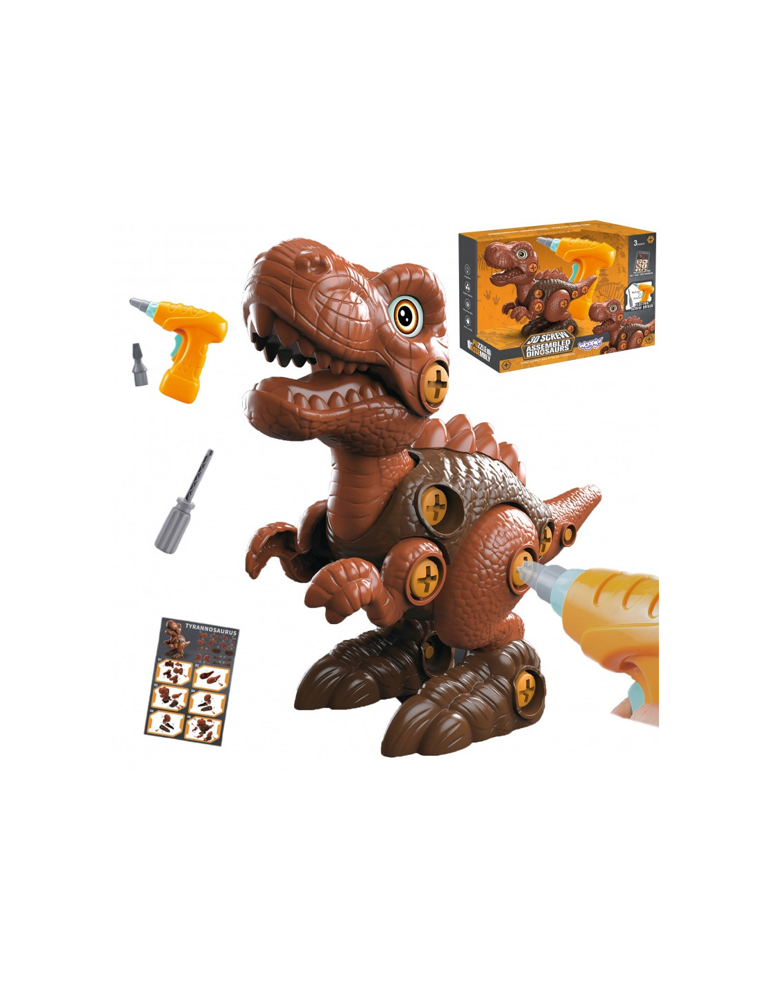 Garsaus prekės ženklo WOOPIE dinozauras Tyrannosaurus yra puikus žaislas „pasidaryk pats“ entuziastams, supažindinsiantiems jūsų vaiką su priešistoriniais laikais. Dinozauras turi judančią galvą ir galūnes, todėl žaidimo galimybės platesnės. Rinkinį sudaro 31 detalė , įskaitant 28 dalis, iš kurių vaikai gali surinkti dinozaurą naudodami funkcionalų atsuktuvą arba elektrinį grąžtą su antgaliu. Grąžtas sukasi abiem kryptimis, todėl galima įsukti ir atsukti . Surinktas dinozauras turi judančią galvą, uodegą ir galūnes, todėl žaidimo galimybės platesnės. Šis žaislas lavins smulkiąją motoriką . Dinozauras – tai nesenstanti tema, kurią mėgsta visi vaikai. Žaidimas su šiuo priešistoriniu padaru praplės jų vaizduotę ir kūrybiškumą .