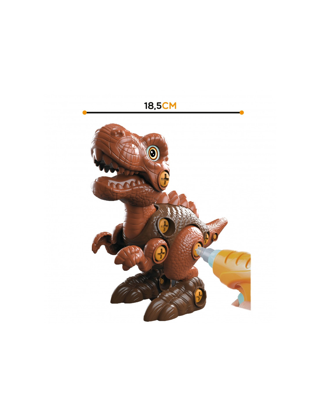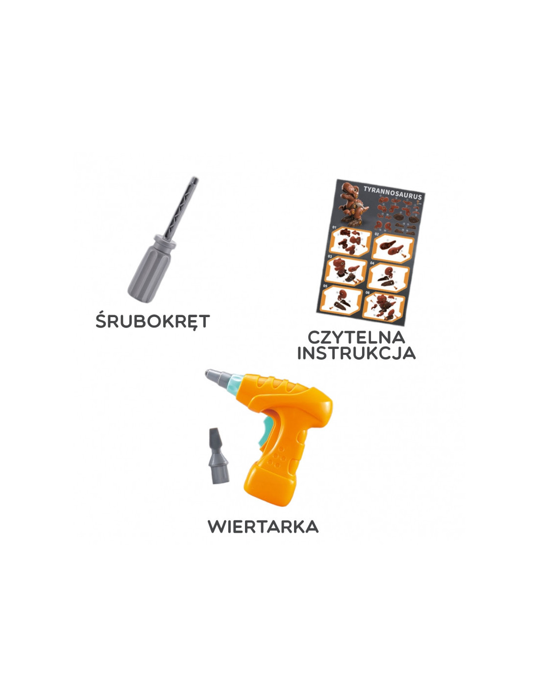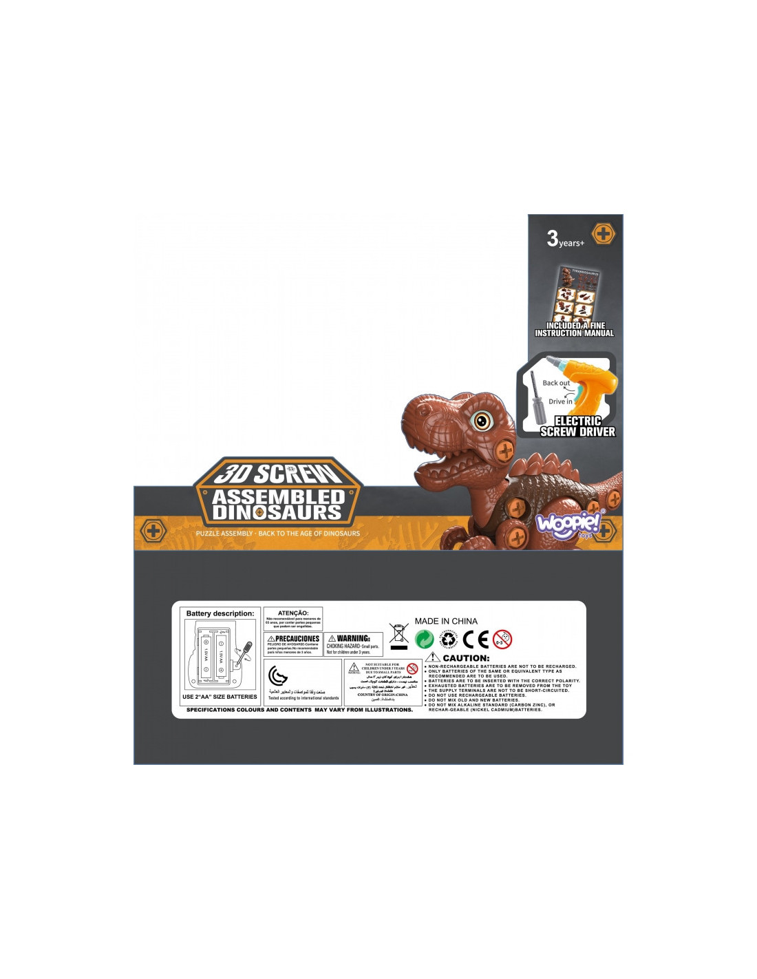 Garsaus prekės ženklo WOOPIE dinozauras Tyrannosaurus yra puikus žaislas „pasidaryk pats“ entuziastams, supažindinsiantiems jūsų vaiką su priešistoriniais laikais. Dinozauras turi judančią galvą ir galūnes, todėl žaidimo galimybės platesnės. Rinkinį sudaro 31 detalė , įskaitant 28 dalis, iš kurių vaikai gali surinkti dinozaurą naudodami funkcionalų atsuktuvą arba elektrinį grąžtą su antgaliu. Grąžtas sukasi abiem kryptimis, todėl galima įsukti ir atsukti . Surinktas dinozauras turi judančią galvą, uodegą ir galūnes, todėl žaidimo galimybės platesnės. Šis žaislas lavins smulkiąją motoriką . Dinozauras – tai nesenstanti tema, kurią mėgsta visi vaikai. Žaidimas su šiuo priešistoriniu padaru praplės jų vaizduotę ir kūrybiškumą .