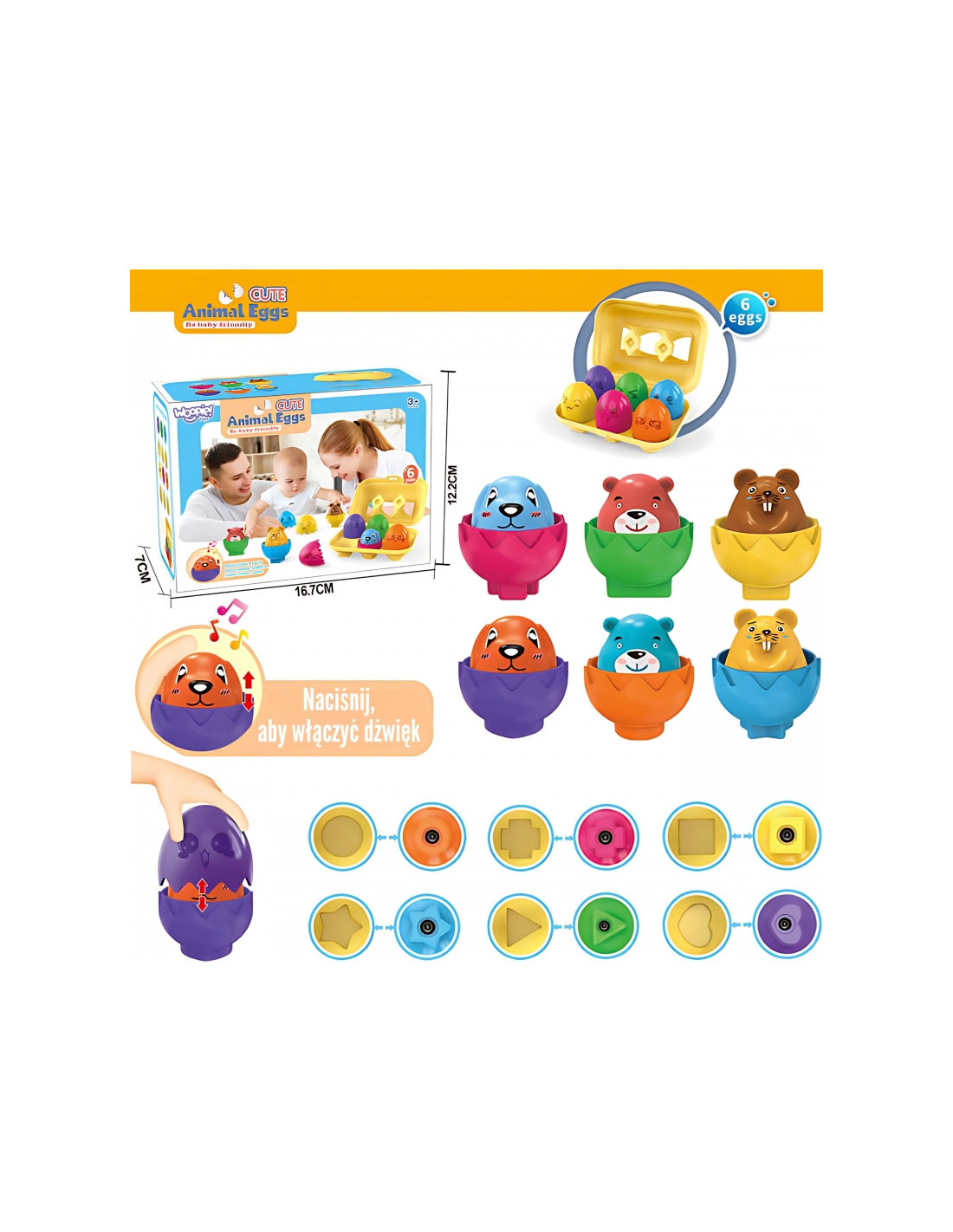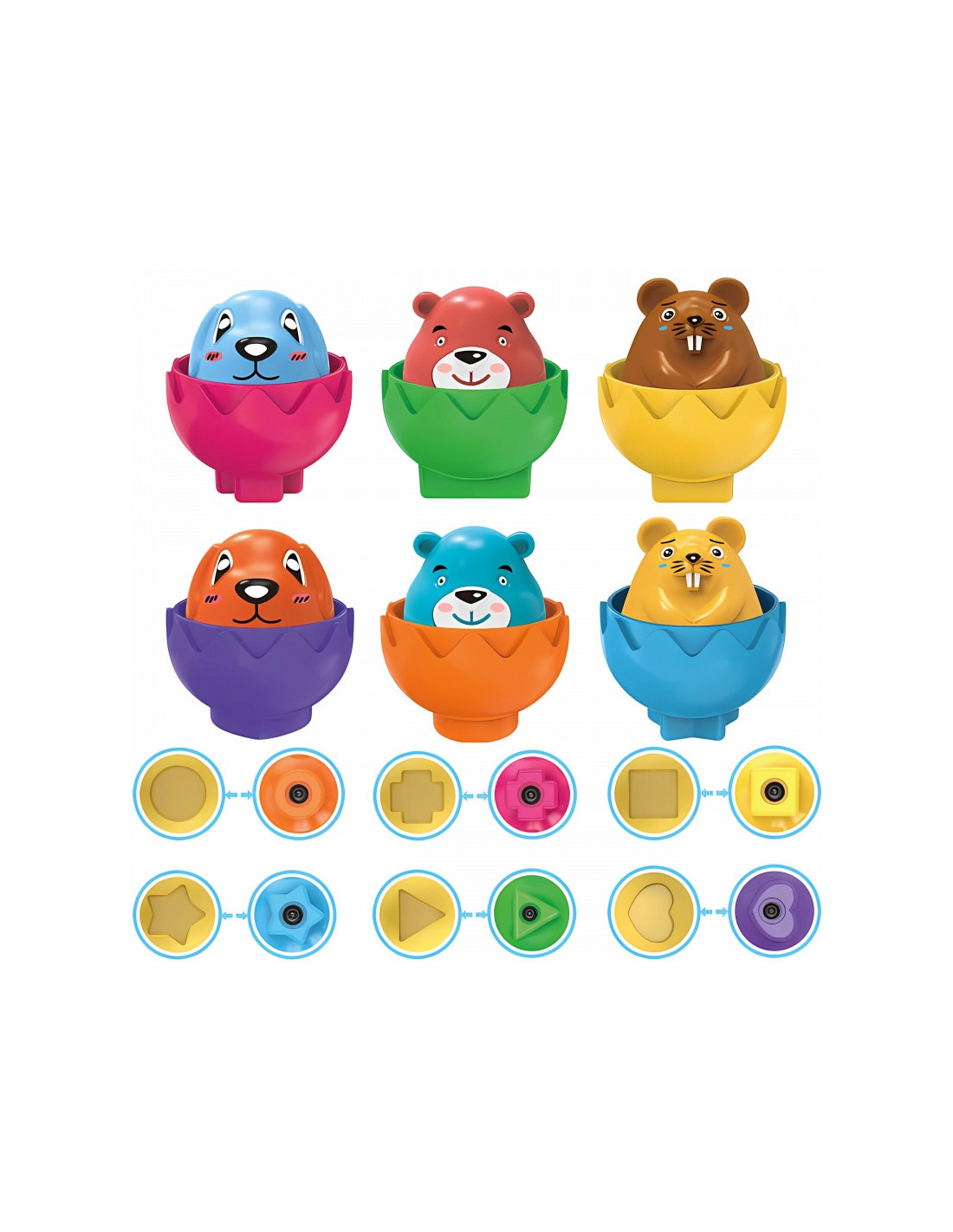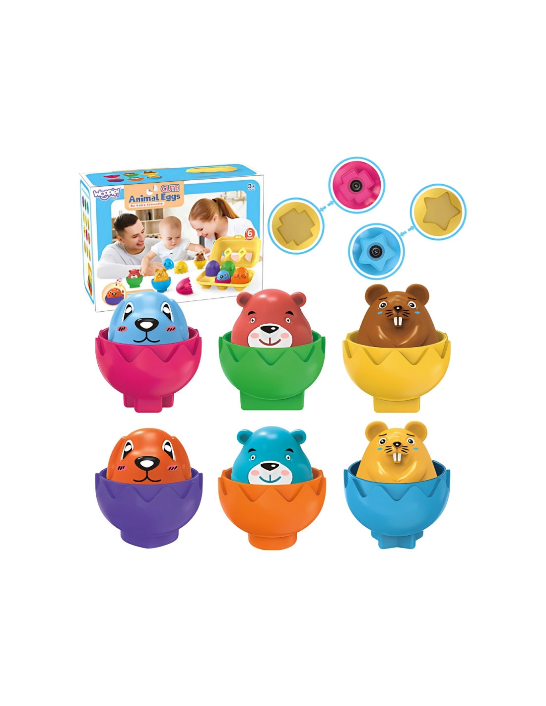 WOOPIE Puzzle Montessori Sorter Match Shapes Linksmi Gyvūnai Kiaušiniai 6vnt