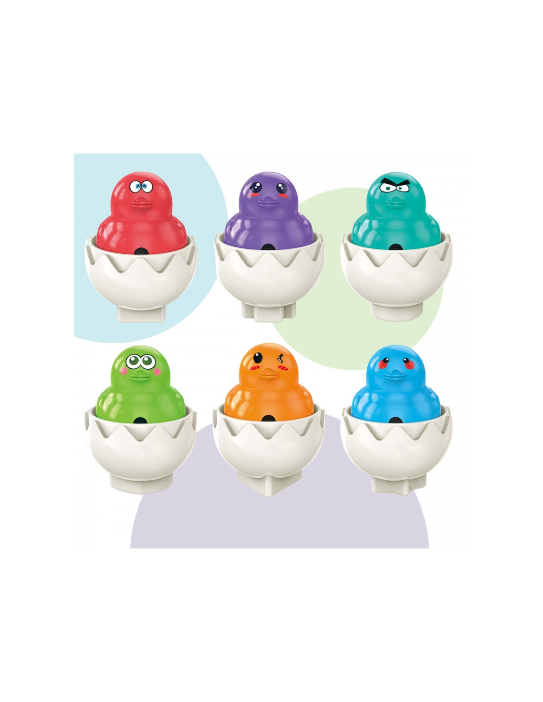 Balti lavinamieji kiaušiniai su spalvingais lipdukais iš Woopie prekės ženklo supažindins jūsų vaiką su spalvų, formų ir juokingų išraiškų pasauliu . Kiekviename iš šešių žavingų kiaušinių yra spalvingas viščiukas su skirtinga, juokinga išraiška. Paspaudus jį, pasigirs garso efektas. Jūsų mažylio užduotis – ne tik priderinti tinkamą lukštą prie kiaušinio, bet ir įstatyti jį į tinkamą angą kiaušinių dėžutėje . Kiekvienas kiaušinis apačioje turi unikalią geometrinę formą, atitinkančią skylutę dėžutėje. Šios juokingos išraiškos yra puikus būdas išmokyti vaikus atpažinti ir įvardyti emocijas. Jos padeda jiems lengvai ir maloniai suprasti, kaip atrodo ir reiškia skirtingi uczucia.To . Tai fantastiškas loginio mąstymo ir koordinacijos pratimas!
