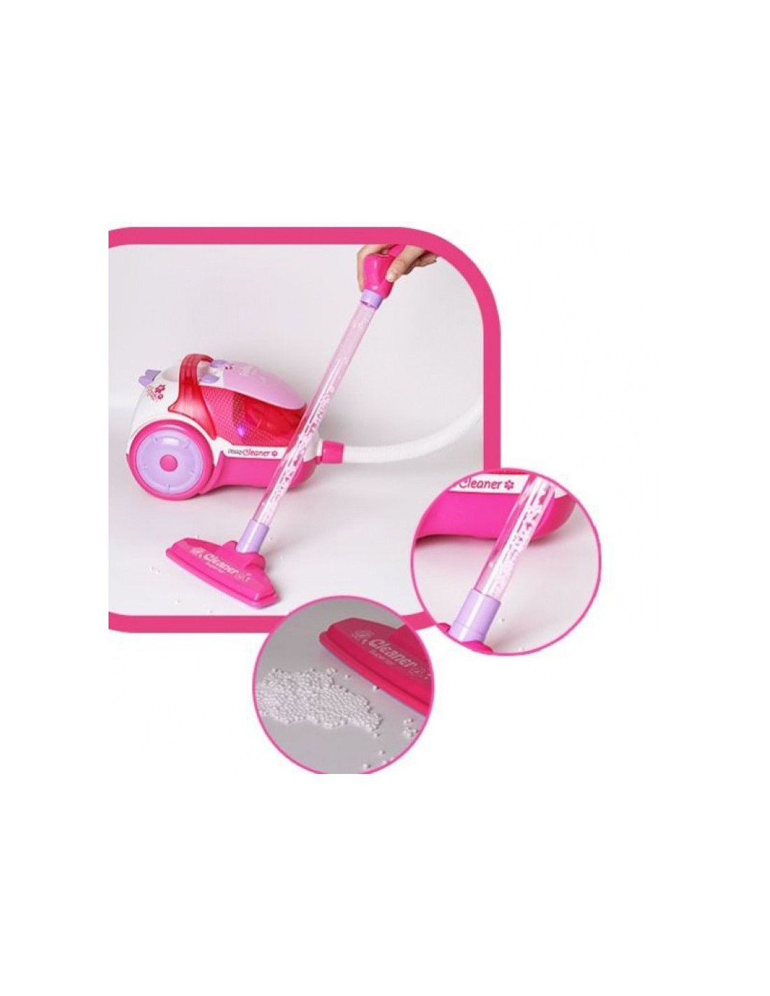 Woopie rožinis dulkių siurblys puikiai tinka mažiems vaikams. Siurbimo funkcija ir garsai valymą paverčia dar tikroviškesniu. Išimamą šiukšliadėžę lengva ištuštinti. Pagamintas iš aukštos kokybės , vaikams saugių medžiagų , jis yra puiki dovana, padėsianti vaikui mėgdžioti savo tėvus – juk kuris vaikas nenorėtų būti suaugęs?