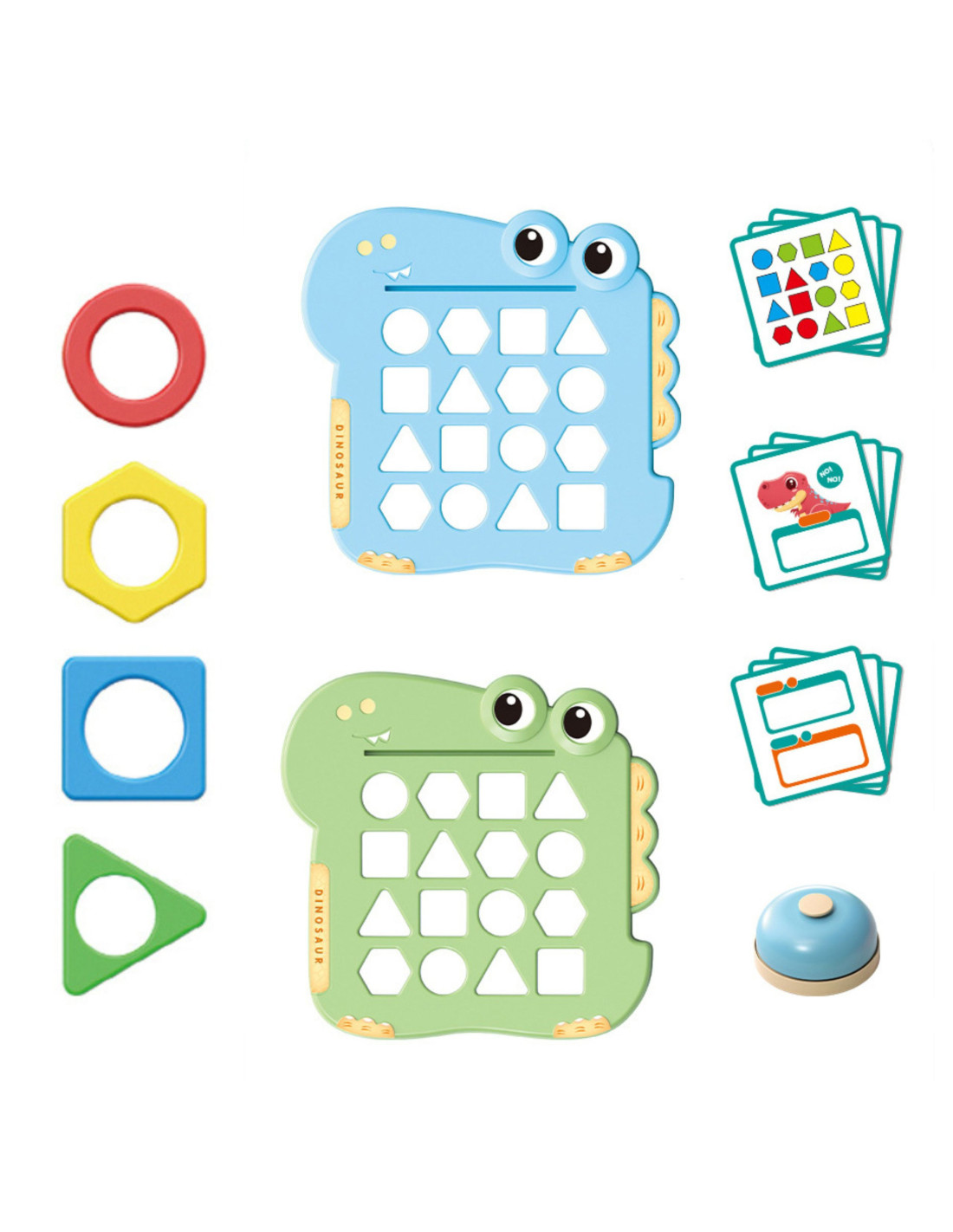 1. Vaikas pasideda priešais save dinozaurų lentą, o šalia jos – kortelių krūvelę su figūrų konfigūracija.