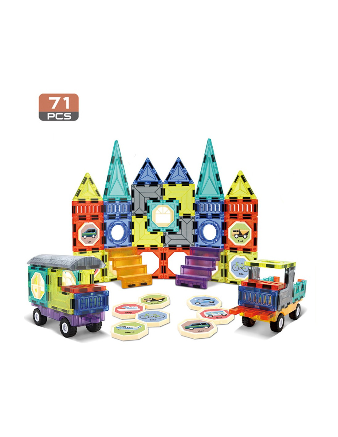 WOOPIE magnetinių kaladėlių 3D rinkinys pilies transporto priemonės 71 vnt.