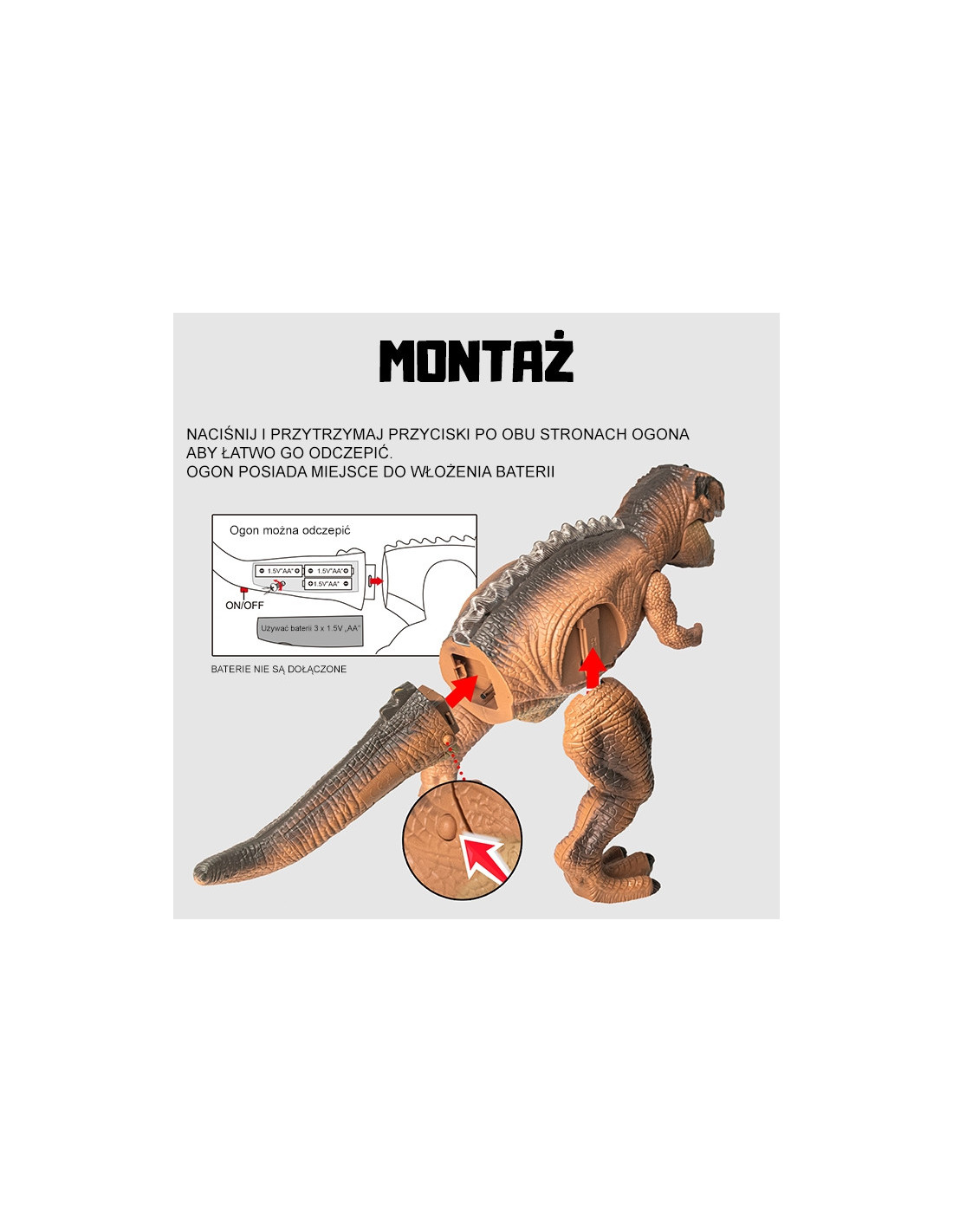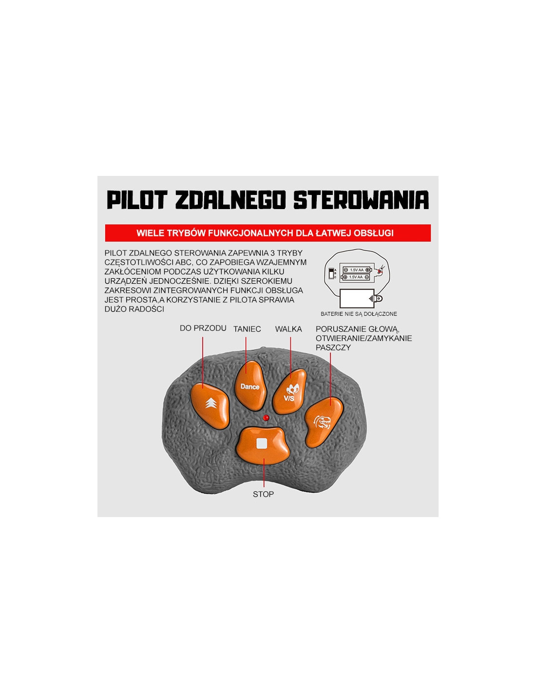 - - Paprastas naudoti nuotolinio valdymo pultas leidžia visiškai kontroliuoti dinozauro judesius ir efektus