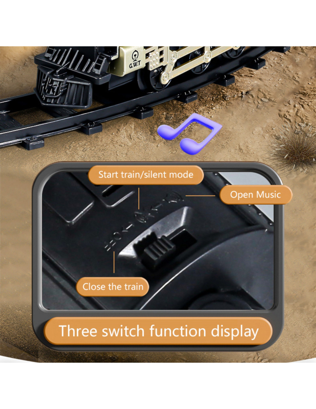 - - Traukinys skleidžia tikroviškus garsus , imituojančius tikro garvežio garsus, kurie dar labiau sustiprina smagią patirtį