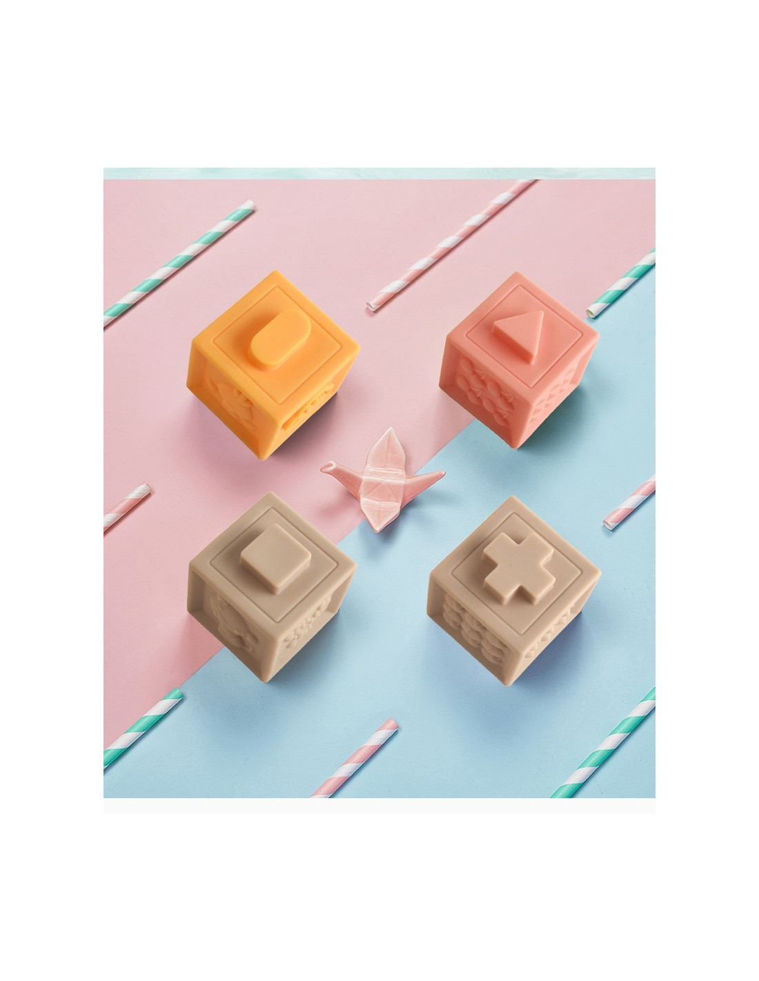 - - išgaubtos formos su skaičiais ir matematiniais simboliais , tekstūros / raštai , gyvūnų atvaizdai , geometrinės figūros ir vaisiai