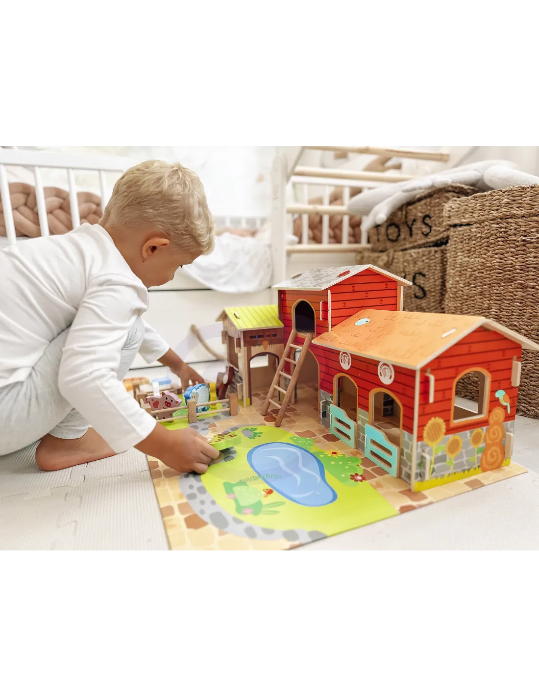 Dėka realistiškų figūrėlių ir pastatų, tokių kaip arklidė, tvartas ir vištidė, vaikai gali sukurti savo pačių ūkį ir vaidinti įvairius scenarijus. Tai ne tik puikus pramogavimas, bet ir praktinis mokymasis apie gamtą, gyvūnus bei kasdienį gyvenimą ūkyje.