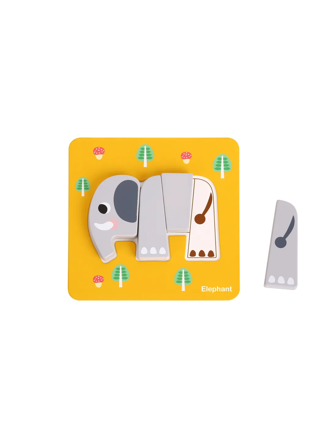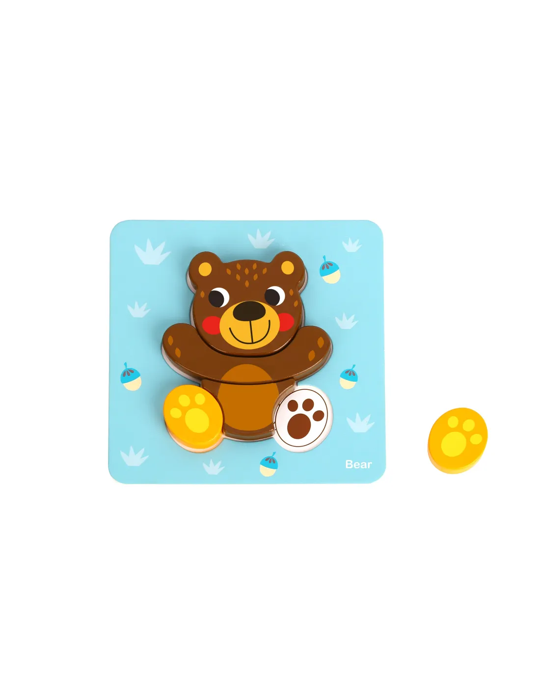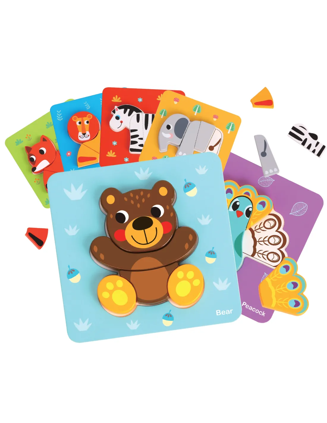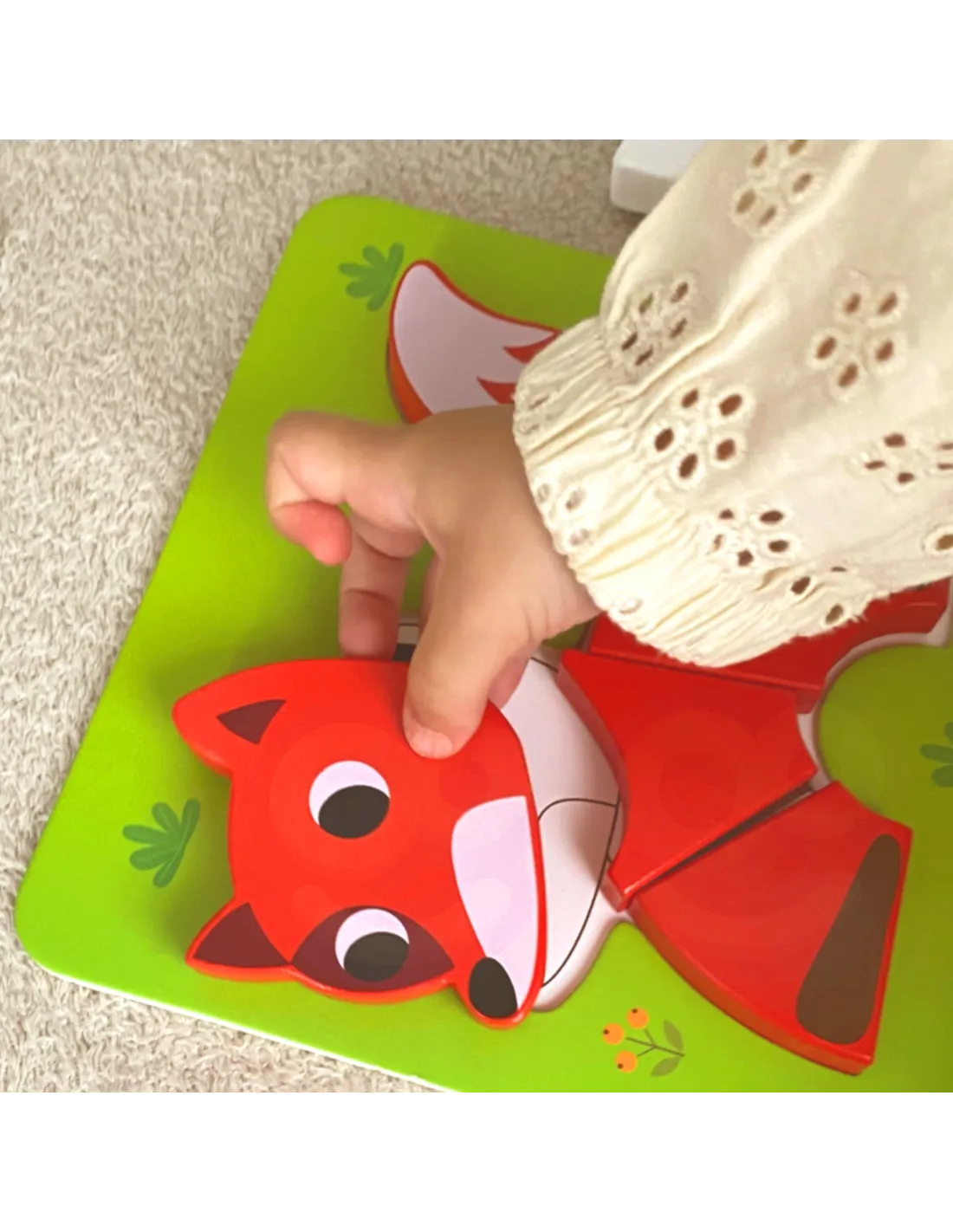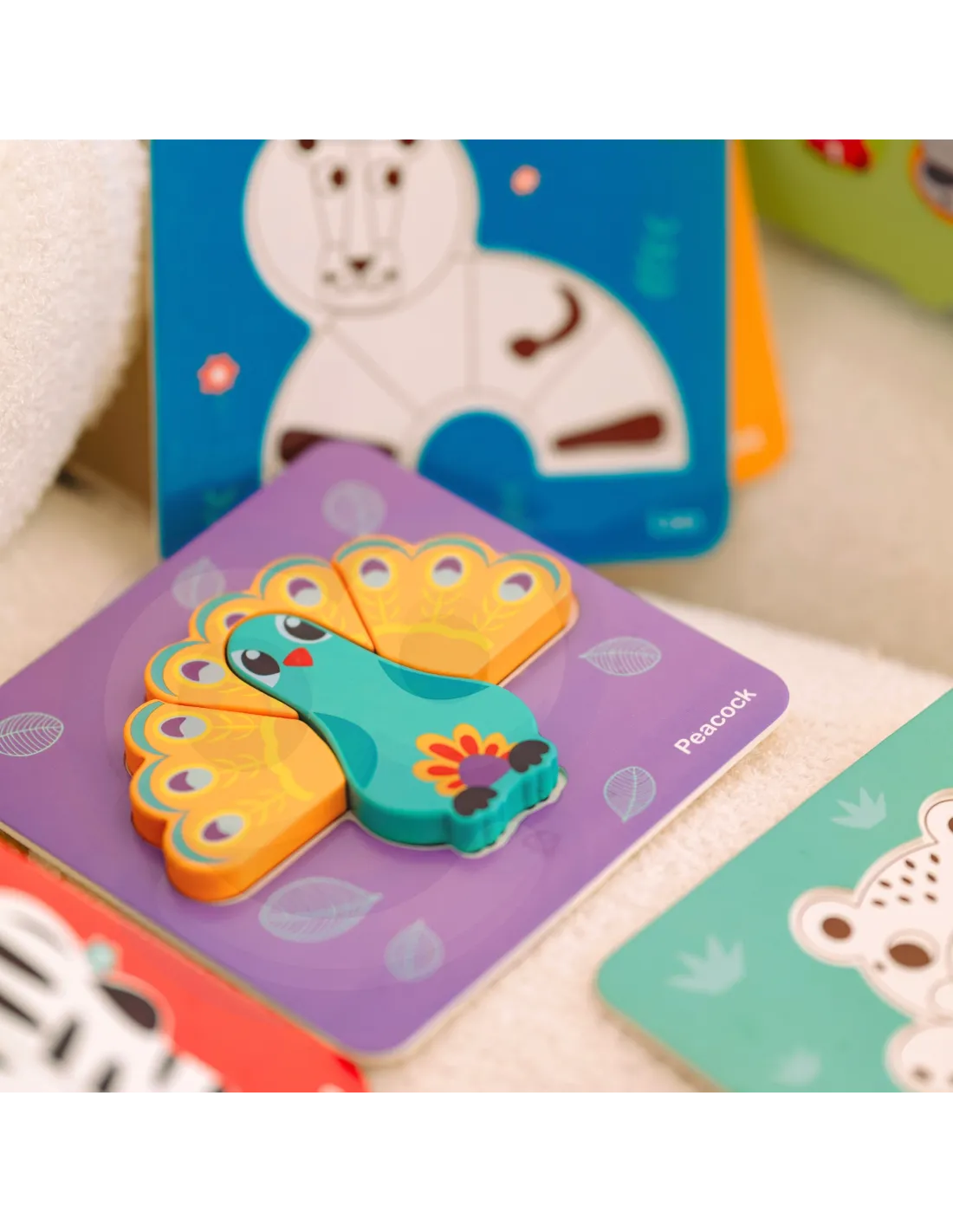„Medinis gyvūnų dėlionė“ – tai unikalus ugdomasis rinkinys, kuriame sumaniai suderintas laisvas žaidimas ir mokymasis. Mažylių pagrindinė užduotis – suderinti didelius medinius blokelius su atitinkamomis angomis paruoštose lentelėse. Specialiai suprojektuotos išėmos kortelėse veiksmingai neleidžia detalėms pasislinkti, todėl paveikslėlių sudėliojimas tampa lengvesnis ir nekelia nusivylimo, o kartu skatina tikslumo įgūdžių ugdymą.